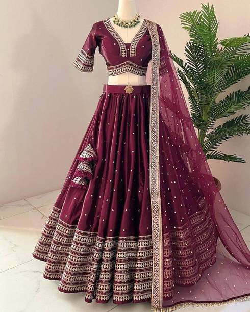 Start a new chapter of your life in a gorgeous attire. Make a fashion statement with delicate, exquisite, and lavish engagement lehengas. Every bride aspires to have the most awe-inspiring dress on her wedding and engagement day. You can pick from a vast collection of lehengas and choose one that truly expresses your sense of style and taste. You can shop for the latest engagement lehenga with beautiful embroidery. You can find lehengas in vivid hues and intricate designs. Choose from multiple fabric options like net, georgette blend, satin blend, taffeta, pure silk, and a lot more, according to your requirements. You can also choose from various patterns like embroidered, self-design, floral print and printed lehengas, and a lot more. Talking about sleeves, you can opt for your engagement lehenga with full sleeves, three-fourth sleeves, half sleeves or sleeveless, as per your preferences. Choose from popular brands like Vozica, FASHION BASKET, SAKHI, GILREATH, OceanZone Fashion, and more. Look outstanding on your engagement day with these lehengas. Place an order online and get your choice of lehenga delivered to your doorstep. Make a statement and be the centre of attention with this gorgeous traditional attire. The information you are reading has been last updated on 07-Nov-25.