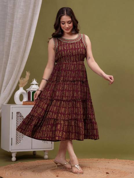 Ethnic dresses for women are the only constant in the ever-evolving fashion scenario. These include kurtas of various lengths, cuts, fits, work, and materials. These can be paired with regular churidars, Patiala salwar, straight pants, Aligarhi churidars, lehengas, shararas, gararas, palazzos, lungis, long skirts, leggings, jeggings, denims, dhotis, and many more. A glittery straight cut kurta with palazzos, worn with chunky earrings and a handheld clutch, completes the look for an evening function. Anarkali suits in different cuts, designs, and patterns, in materials ranging from net to georgette, with work like zari, sequins, zardozi, embroidery, mirrors, stones, beads, and gota in soft pastels are ideal party wear options. A matching drawstring or potli bag and stones in the ears, neck, and fingers make you look like a million dollars. A long kurti with a front slit can be teamed with a lehenga-style skirt. Teaming ethnic dresses for women with juttis and a scarf completes the look for a casual day out. The style, comfort, elegance of ethnic wear makes it a popular choice with women. Brands like METRO-FASHION, poshak, Lee Moda, TREND ME, and mokshi and more, offer these Indian dresses for women. Buy the latest ethnic dresses for women from the comfort of your home and get the dresses delivered to your doorstep. The information you are reading has been last updated on 23-Jan-26.