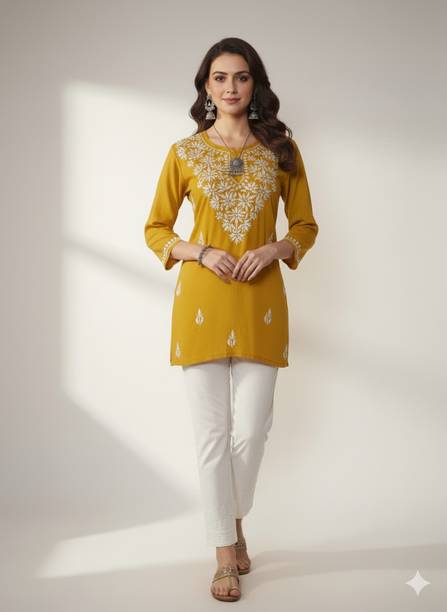 Kurtis are a comfortable ethnic dressing option for women and can be styled in different ways. With multiple fancy sleeves designs for kurti, such as half sleeves, full, three-fourth, short, and sleeveless, you can add to your overall look. Pair a kurti with trendy salwars, leggings, palazzos, and jeans for a smart look. There are numerous kurti lengths online such as hip, ankle, calf, below the knees, above knees, knee length, etc. Available in various colours and packs between one to ten, browse through the latest designs and make your choice. Choose from abstract, appliqué, floral, striped, checkered, polka dots, geometric, embroidered, sequined, beaded, and many more attractive new prints. Pick from variable fabrics such as cotton, rayon, crepe, khadi silk, chiffon, etc., and blends such as crepe georgette, cotton rayon, cotton jute, crepe chiffon, according to your tastes. Fancy sleeve designs for kurtis include bell sleeves, puffed, baby sleeves, lace, and many more. You can get different cut types such as Anarkali, A-line, straight, front slit, kaftan, flared, etc. Buy saree dress kurtis from trusted brands like BBV, Bhavani, HERE&NOW, Serving Princess, Purvi, etc. Order them online from your home and get them delivered to your doorstep. The information you are reading has been last updated on 13-Dec-25.