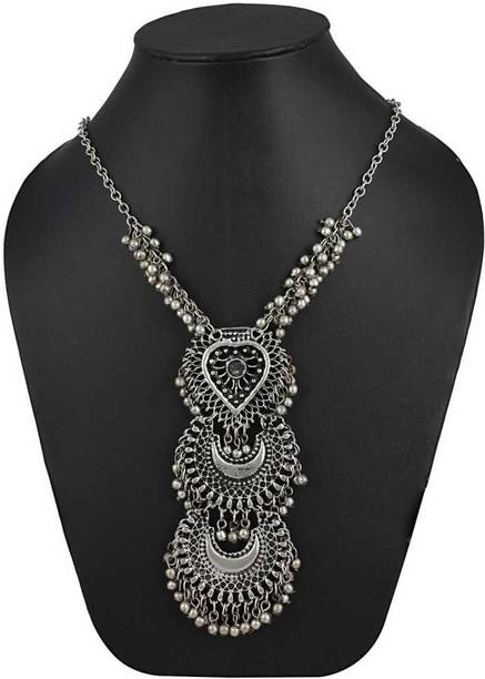 There are numerous ways to style your necklace with an outfit. For instance, you can wear a silver-toned chunky necklace with a plain black top, a pair of wide-legged trousers and a tan brown shoulder bag for a boho-chic look. You can also style your sleek and elegant, gold-toned necklace with a white dress and a pair of sneakers for a fusion look.