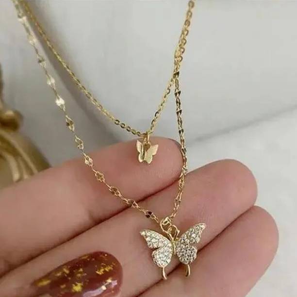 d.) Cinderella Collection By Shining Diva Golden Multilayer Dainty Alloy Necklace
