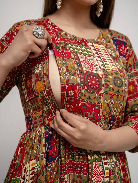 Feeding kurtis are a lifesaver for mothers looking for an ideal solution to feed their newborn babies while outside. This skurti comes with an innovative design that can help new mommies breastfeed their young ones without facing any hassles. You can find a small zipper on the side of these kurti's bust areas that can help newborns feed without any problems. There is no need to partially loosen any part of the attire to make space for breastfeeding in these ethnic wear. You can find the latest feeding kurtas available in beautiful designs like kalamkari, patchwork, woven, bandhani print, checkered, embellished, embroidered, floral prints, and more. You can wear these to casual events, formal parties, religious festivals, and ceremonies. Enjoy outdoors with your little one in these beautiful utility ethnic wear in comfortable fabrics such as rayon, pure cotton, crepe chiffon, georgette, fleece, viscose blend, etc. These are the ideal maternity wear for women who love to be in style while travelling with their babies. Depending on your comfort, you can opt from various sleeve lengths and kurti sizes. You can choose colourful feeding kurtis from well-known brands like HABILIMENTS, TextileFab, sai's, Mom'sLove, and Easy Feed. The information you are reading has been last updated on 26-Feb-26.