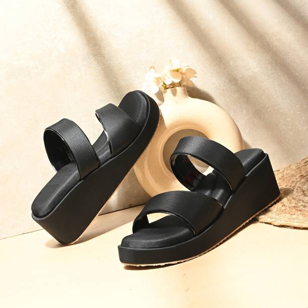 Flatform heels sandals are elegant women’s footwear that adds glamour and style to the personality. They bring about a good posture, and walking in the sandals adds height to the person. The heel tips may vary in the flatform sandals based on the primary design, such as wedge shape or block. Available in multiple colours and styles, the sandals may be worn to casual, formal, ethnic, party, or wedding occasions. Choose from varied themes such as bow sandals, slip-on, peep toes, metal tint, wedges, etc. Make the best of the attractive offer options available online to acquire flatform sandals. The size varieties range between 2 to 12 in UK size foot measurements. The soles are made from durable materials such as sheet soles, air max, a resin sheet, ethylene-vinyl acetate or EVA, thermoplastic rubber, etc. The outer materials used to construct the sandals are suede, plastic, polyurethane, fabric, leather, etc. Select the desired heel height between 2.25 cm (1) to 11.2 cm (5) accessible in the flatforms. Buy the latest flatform heels sandals (new) for your footwear collection at the best price choices. Order flatform heels sandals online from brands such as Allen Solly, Right One, Bruno Manetti, Miss Universe, Red Flamingo, etc., from the comfort of your home for convenient doorstep delivery. The information you are reading has been last updated on 01-Mar-26.