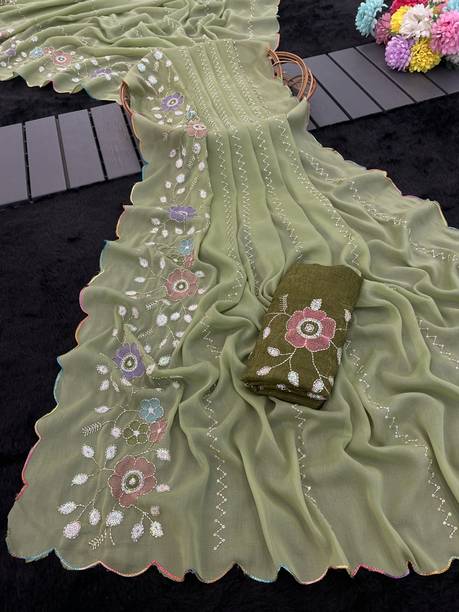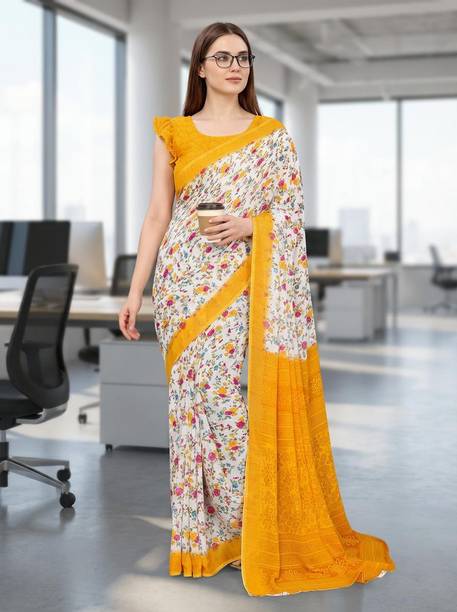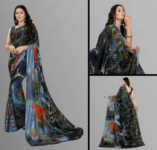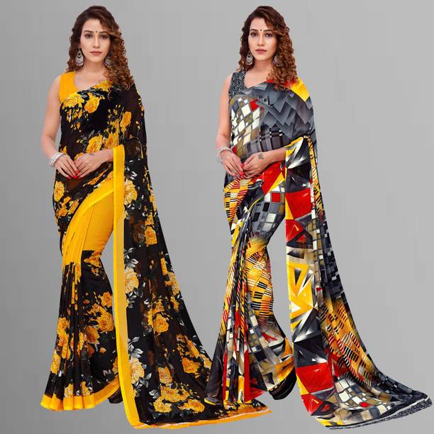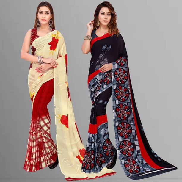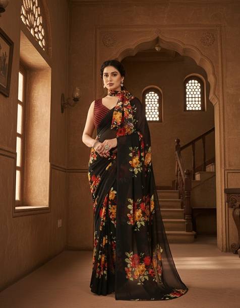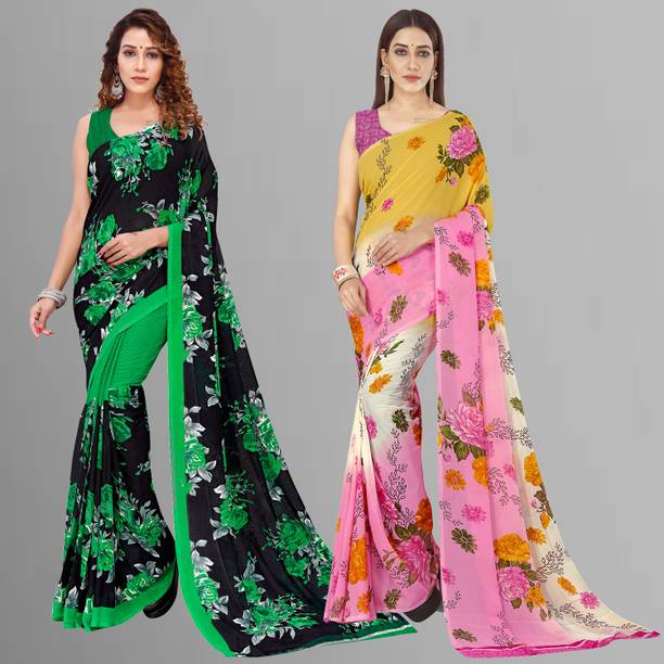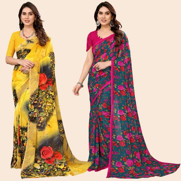 Look feminine and fashionable in the lovely floral georgette sarees available online. Combine style and elegance by choosing a floral printed georgette saree. The floral patterns or motifs elevate the saree’s beauty and add to the charm of your look. The paisley printed georgette exudes an air of elegance. You can create a statement by wearing the pallu to the front or wear it like a lehenga. Georgette is a lovely material that gives the wearer a slimmer appearance as the fabric clings to the body perfectly. Pick a georgette saree with intricate designs or with embellishments. The collection of these beautiful sarees is sure to leave you asking for more. Pick a combo of two or more floral printed georgette sarees in vivid hues. Browse the latest floral georgette sarees available online in a wide variety of lengths, designs, colours, and patterns. There are popular variations of the floral georgette sarees that you can select from, like the half and half sari style, regular sari, lehenga sari, and stitched sari. You can shop from popular brands like kashvi sarees, Anand SAREES, Kanooda Prints, KARA, SAARA, and many more. So, place an order online for easy doorstep delivery. The information you are reading has been last updated on 09-Mar-26.
