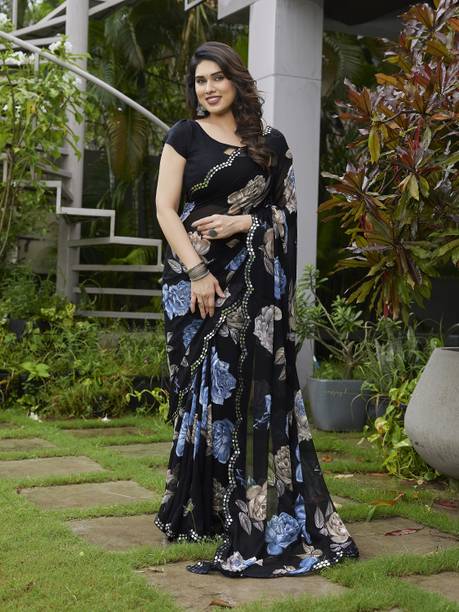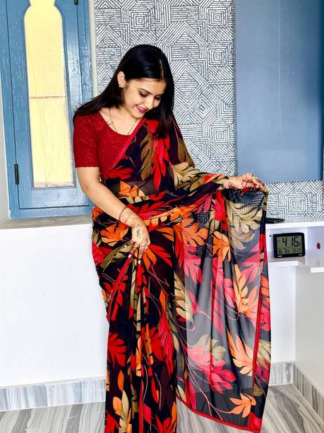Look feminine and fashionable in the lovely floral georgette sarees available online. Combine style and elegance by choosing a floral printed georgette saree. The floral patterns or motifs elevate the saree’s beauty and add to the charm of your look. The paisley printed georgette exudes an air of elegance. You can create a statement by wearing the pallu to the front or wear it like a lehenga. Georgette is a lovely material that gives the wearer a slimmer appearance as the fabric clings to the body perfectly. Pick a georgette saree with intricate designs or with embellishments. The collection of these beautiful sarees is sure to leave you asking for more. Pick a combo of two or more floral printed georgette sarees in vivid hues. Browse the latest floral georgette sarees available online in a wide variety of lengths, designs, colours, and patterns. There are popular variations of the floral georgette sarees that you can select from, like the half and half sari style, regular sari, lehenga sari, and stitched sari. You can shop from popular brands like kashvi sarees, Anand SAREES, Kanooda Prints, KARA, SAARA, and many more. So, place an order online for easy doorstep delivery. The information you are reading has been last updated on 21-Jan-26.