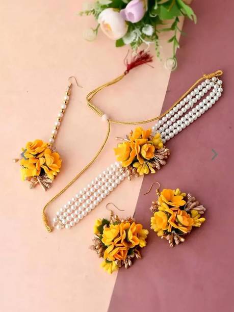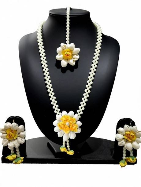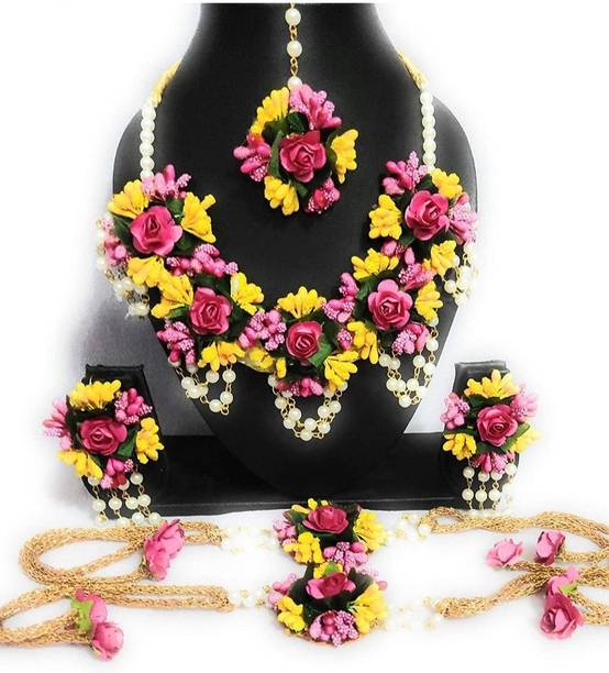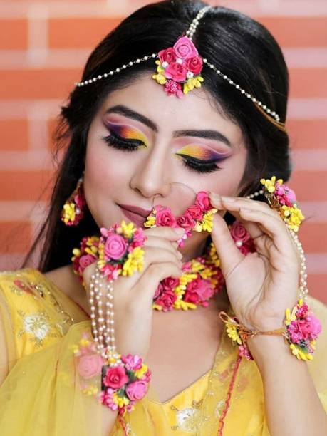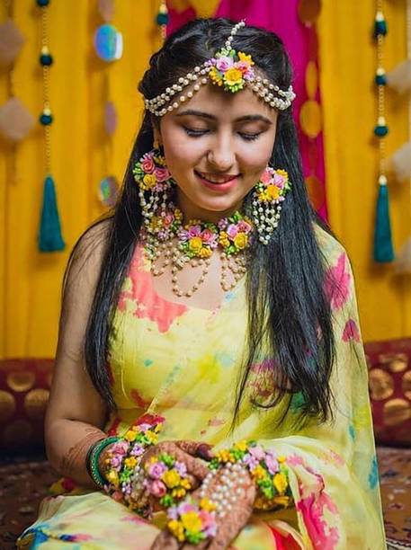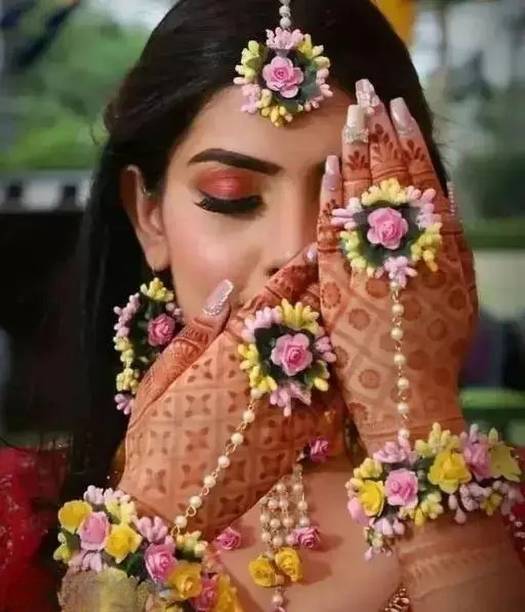 Flower jewellery for brides is a must-have option in the wedding trousseau. Flowers are not only meant to beautify the wedding decor, but they can also enhance the look of the bride. You can style with floral ornaments on occasions ranging from mehendi to haldi to sangeet and look gorgeous on your special day. When paired with proper attire, flower ornaments look absolutely stunning with a dose of freshness. Get relief from heavy bridal earrings and balis by adding floral jewellery to your collection. Theme options like American diamond jewellery, bold ethnic stud earrings, bridal, chandelier earrings, charm, chunky chain necklaces and more are available online to meet your requirements. You can wear artificial floral ornaments embellished with agate, alexandrite, amber, amethyst, andalusite, aquamarine, and other precious or semi-precious gemstones. Some brands that offer floral jewellery online are Apara, Bangalore Refinery, Bhima Jewellers, Fashion Frill, Joyalukkas, and many more. Ensure that your floral ornament stands out from the rest as you wear them in contrast with your outfit. Brides love this jewellery as it can attract everyone’s attention and are easy to carry. Browse and choose flower jewellery that matches your outfits and personality and get them delivered to your doorstep.