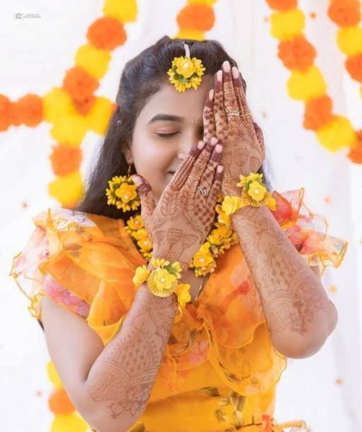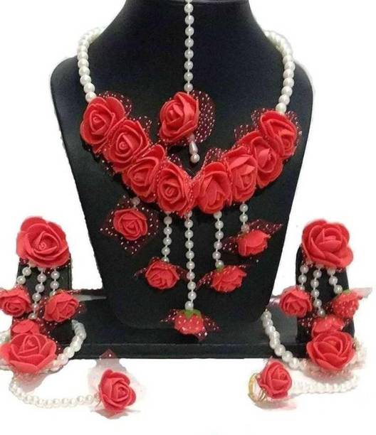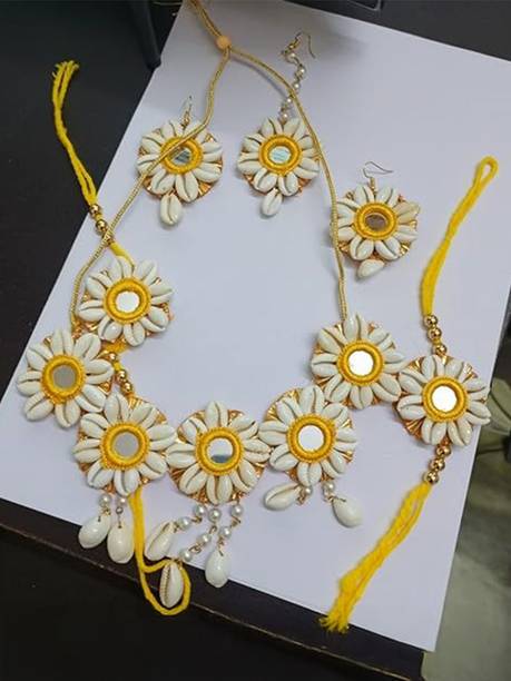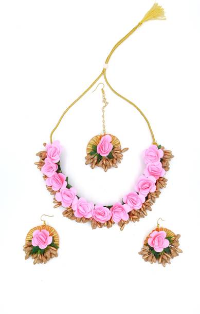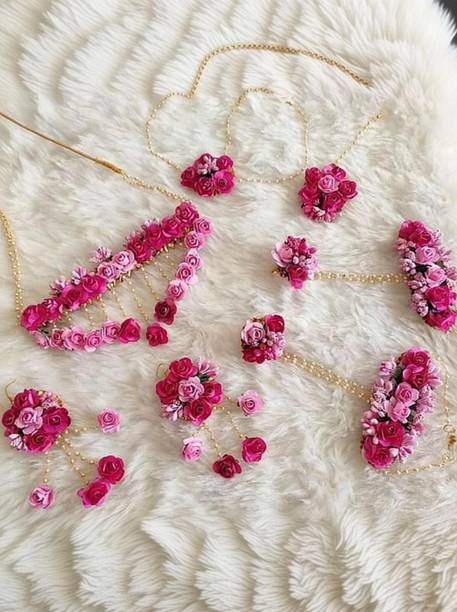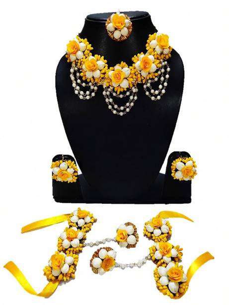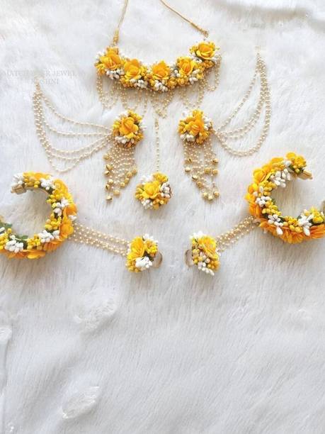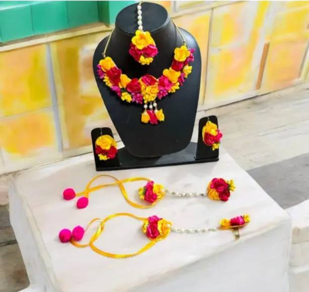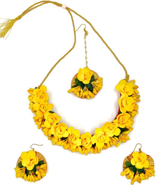 Jewellery is an inseparable part of an Indian woman's life. Floral jewellery is ideal for pre-wedding functions to make a trendy style statement. Explore a wide range of flower jewellery for haldi and mehendi functions. It will make you look pretty and feel special while adding natural elegance to your appearance. Choose from the collection of latest flower jewellery for haldi (new) sets, including necklace, hand-harness, matha patti, kamarbandh, payal, bajuband, earrings, tiara,maang tikka, and more in beautiful designs and vibrant colours. Explore the new collection of floral ornaments at a great offer. The floral jewellery is available in various materials like alloy, brass, cotton, metal, pearl, plastic, silk dori, paper, rubber, and more. The paper, plastic, and fabric ones are lightweight and comfortable to wear. Although yellow flower jewellery for haldi looks alluring, a little pop of colour on your haldi event will give you an edgy look. You can choose from quirky colours like blue, pink, orange, red, turquoise, and many more. Find your perfect piece at the best prices from popular brands like 12SEASONS, RAGABANDHA DESIGN STUDIO, Rozec, Global Ecom, Naazzfashionhub, and more. Buy the floral ornaments online and get it delivered to your doorstep. The information you are reading has been last updated on 18-Jan-26.