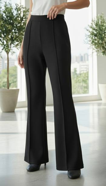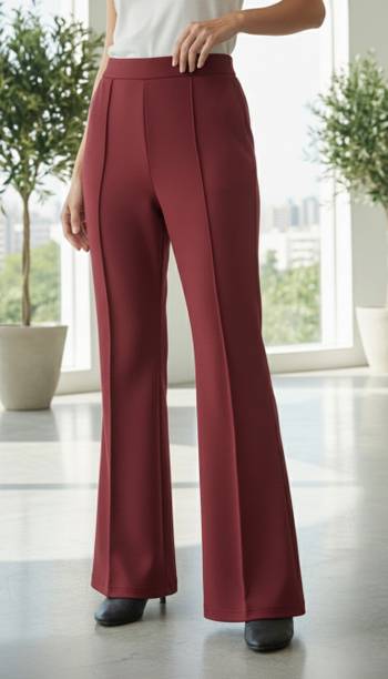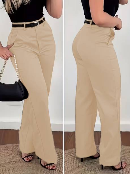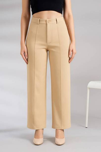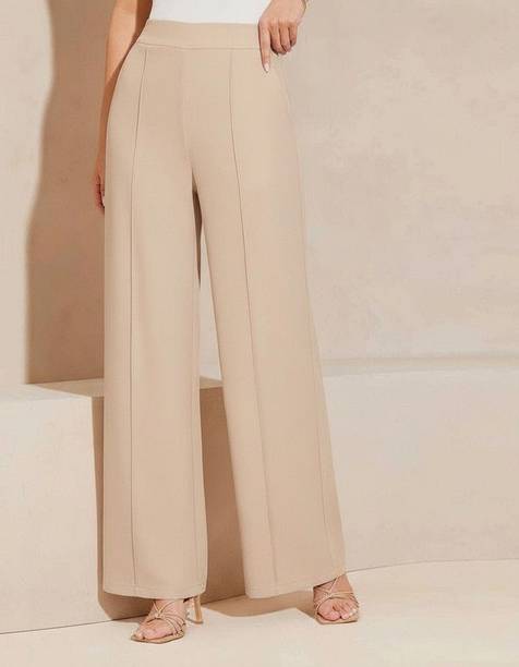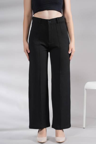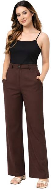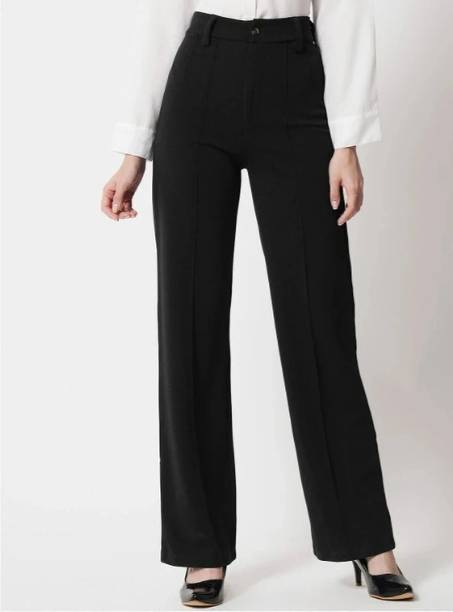 Dress with finesse every time you head to work or any formal occasion with a pair of formal pants for women. Whether you like a cute belt for added support or a pair of high heels to complete the ensemble, you can choose as you fancy. With matching topwear that gives an elegant vibe, you can dress in style. In addition, these pants can provide maximum comfort and can be worn for long hours. Get your stock of the latest formal trousers from the diverse collection available online. There are flared, slim, tapered, regular, skinny, and relaxed fit patterns available that you may swipe and click from. Moreover, you can choose from several trendy patterns, such as textured, self-design, striped, solid, chequered, embellished, and more. You can find your best look with the vast collection of formal pants for women available online. Several brands offer these formal pants online, such as Vero Moda, Street9, Lyra, Roadster, Tokyo Talkies, and others at different price ranges. Ooze elegance at your workplace or your formal event with a range of formal pants on the online store. Buy your desired pants online and get convenient delivery to your doorstep.