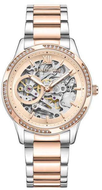 If you’re into watches with big dials, the Fossil rose gold dual-tone watch might be a good fit. This watch’s circular dial has shiny crystals surrounding it. Its strap also has a sprinkle of diamonds on the edges. The Cecile Fossil rose gold watch is likely to catch the fancy of women whose style is best described as androgynous. This sports watch features a large round dial and a broad strap, with three subdials adding to its boyish appeal.