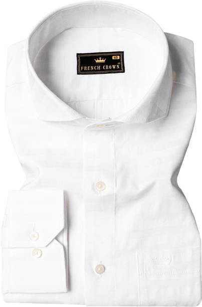 Men Regular Fit Striped Cut Away Collar Formal Shirt