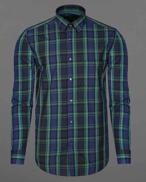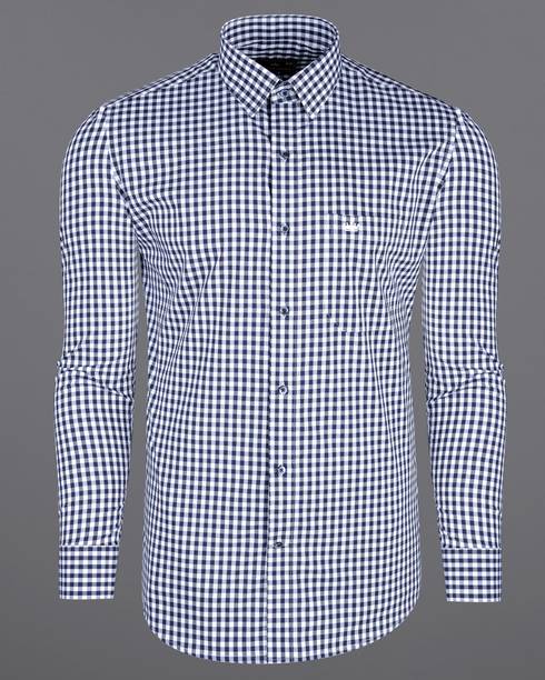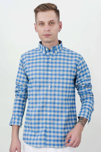 Men Regular Fit Checkered Button Down Collar Casual Shi...