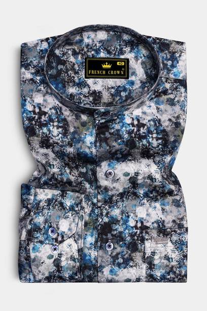 Men Regular Fit Printed Mandarin Collar Formal Shirt