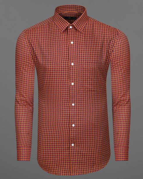 Men Regular Fit Checkered Spread Collar Formal Shirt