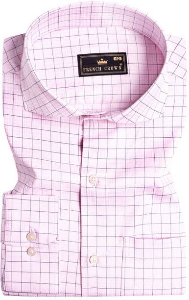 Men Regular Fit Checkered Cut Away Collar Formal Shirt