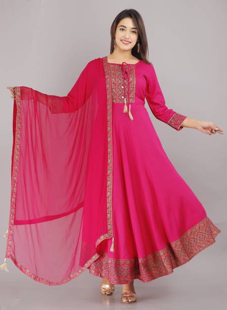 When in doubt, always go for a frock salwar suit. Loved by women of all ages, these can be worn to any occasion, be it a wedding, pasty, casual, or formal event. As the name suggests, these are designed as a dress with swirls and flowing drapes. It can be worn as it is or paired with skirts, palazzos, leggings, or churidars. You can check out the latest frock salwar suit from brands like KAPANKU, Bhumik Enterprise, SHAFNUFAB, W ETHNIC, Riya Fashion, and many more. These ethnic wears are suited for all body types as they accentuate the waistline and shoulder while concealing the lower body with flares. The Anarkalis are an all-time favourite and can be styled with or without a dupatta and matching bottoms. It is a perfect ensemble for weddings and parties with embellishments, sequins, stone, and zari work. The peplum or the Punjabi suit can be worn with matching Patiala to create an authentic style or paired with a palazzo for a contemporary look. Based on the designs and material, the floor-length gowns with the flares are apt for any event. Vibrant coloured florals and paisleys are suitable for summer, while dark coloured ones are suited for colder seasons. You can shop for frock salwar suits online and add them to the cart for doorstep delivery. The information you are reading has been last updated on 28-Jan-26.
