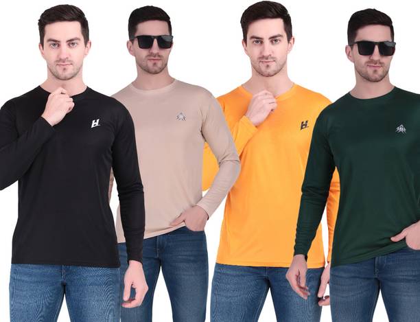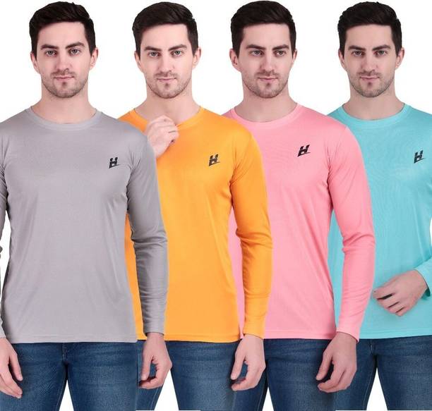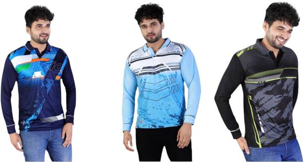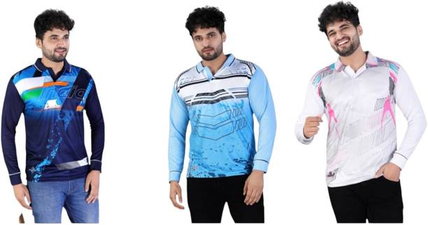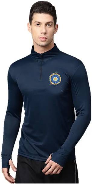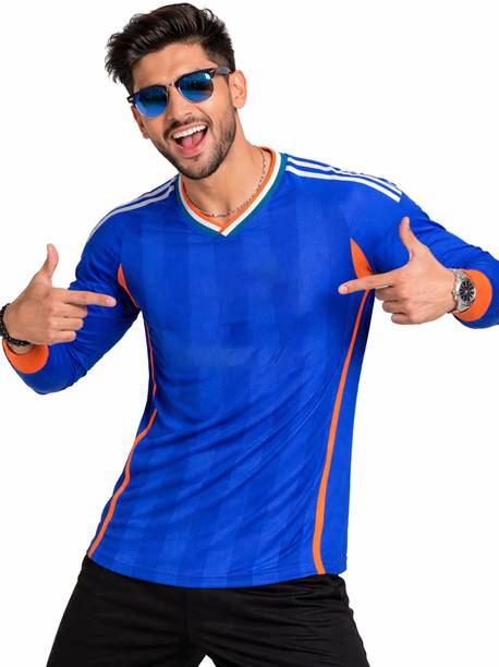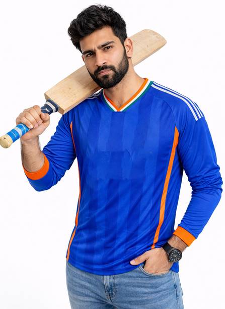 Full sleeve cricket T-shirts may be worn on sports and casual occasions. Check out the various patterns, themes, fits, colour combinations, sleeve types, neck patterns and fabrics available in the T-shirts before buying them online. Whether you prefer a boxy fit, slim fit, compression fit or a regular fit, choose the desired fit from the collection as you shop online. Patterns like striped, sporty, superhero, graphic print, typography, self-design, colour block, solid, etc., are available in the T-shirts. Scroll through the various superhero logos available such as Marvel, Superman, Man of Steel logo, Avengers logo, Batman logo, Super Soldier, etc. A suitable neck type may be chosen for the T-shirts, like pole neck, V neck, round neck, mandarin collar, hooded neck, high neck, etc. Check out the different types of fabrics used in the T-shirts and select from viscose rayon, poly-cotton, polyester, cotton blend and nylon as desired. Couple a full-sleeved T-shirt with a slim-fitting pair of jeans and sports shoes for a completely sporty look. There are full sleeve cricket T-shirts available for men, women and kids. Buy T-shirts online from brands like London Crew, Organic Chics, Loyal Greens, Just Rider, DS World, etc. Swipe and select a T-shirt online and pair them with stylish jeans to amp up your sporty look.