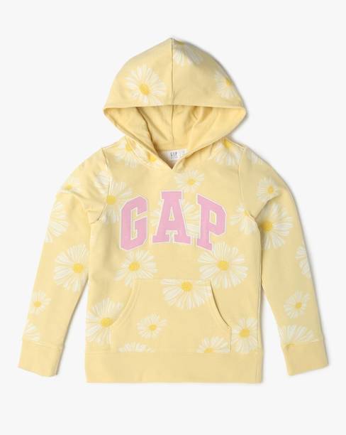 Girls Full Sleeve Floral Print Hooded Sweatshirt
