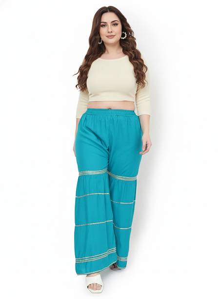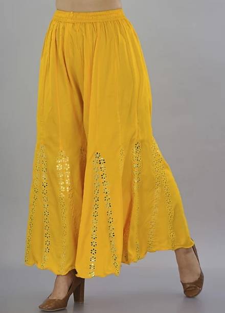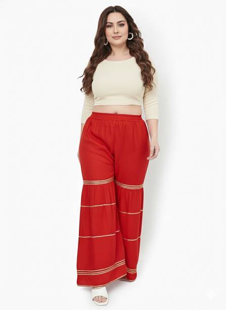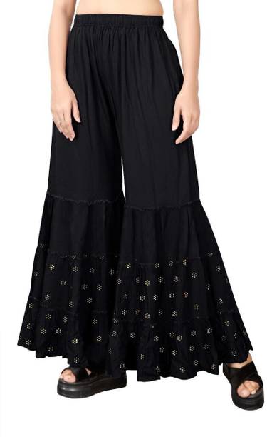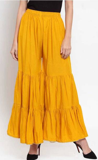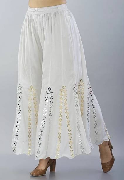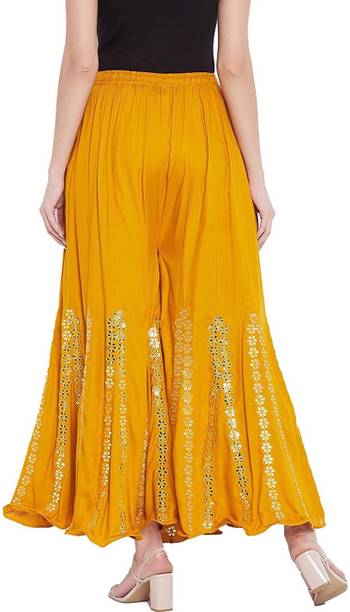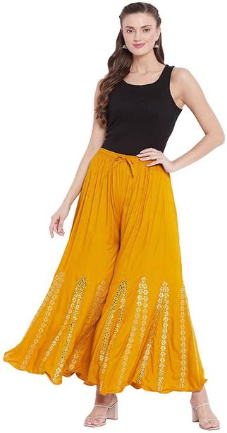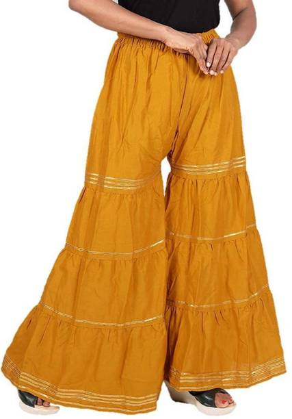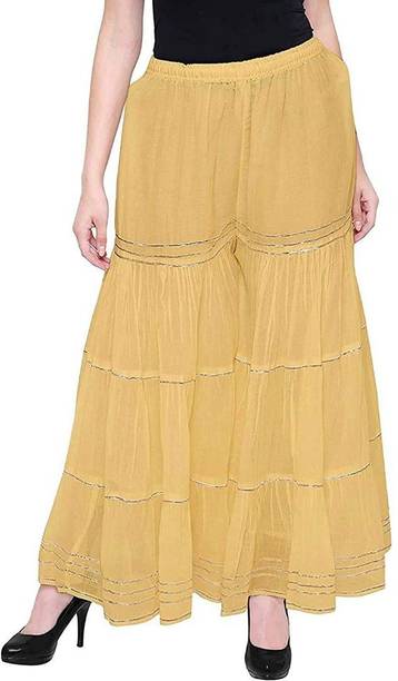 Gararas are versatile pieces of clothing that are a must-have item in your closet. They are perfect to wear with a kurta and dupatta or short tops. Create different looks with this outfit by pairing them with different accessories. You can wear this bottom wear at a summer event as it makes you look stylish and keeps you comfortable throughout the day. You can choose from the fabric options like cotton jersey, muslin, poly chanderi, lycra blend, net, pure silk, and more available online. This clothing is also a good option if you have a wedding invitation around the corner. Purchase this bottomwear from brands like Aarika, Aasi - House of Nayo, Aawari, Ada, Aditya Creation, and more available online. They are available in multiple sizes and suit all body types. To meet your requirements, you will find pattern options like chequered, colour block, dip and dye, textured, floral print, geometric print, embellished, and more available online. For daily use, you can opt for a pastel colour regular fit pants that can be styled with vibrant kurtas or tops. This bottomwear can be your last-minute saviour and make you look effortlessly glamorous. Buy gararas and pair them with your favourite kurtas to become the centre of attraction at a social gathering.