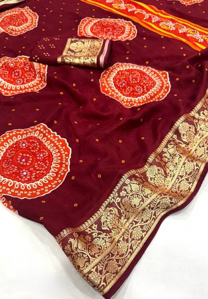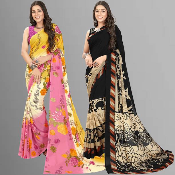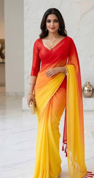 The georgette sarees are known for their grace and easy-to-drape quality. These sarees have a translucent, crinkled surface that makes it recognisable as a fabric. Such sarees are lightweight and convenient to wear for long hours. Flowing and gossamer-like, these sarees are breathable and keep you feeling cool even during the summer season. You can browse the collection of the latest georgette sarees and choose from various colours, prints, weaves, and combinations. You can select from floral print, hand-painted, embroidered, block printed, polka print, and many more in terms of patterns. Opt for different styles of sarees according to your requirements and the occasion. Choose from regular sari, stitched sari, lehenga sari, half and half sari, and many more. Opt for multi-coloured printed leheriya saree decorated with gota from Nimisha Fashion or striped and polka saree hand from Anand Sarees. Other brands you can choose these gorgeous georgette drapes from are SAARA, Fabwomen, Divastri, Varanga, 3SIX5, and more. You can also gift these beautiful weaves to your family and friends during special occasions and. Pick your favourite georgette sarees online and have them delivered to your doorstep. The information you are reading has been last updated on 14-Apr-26.