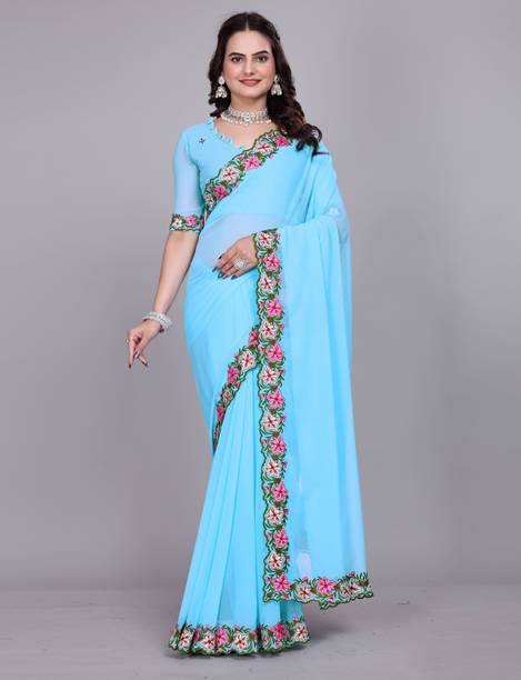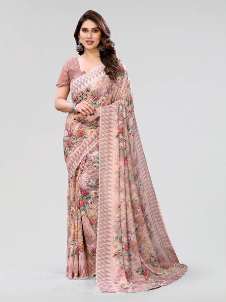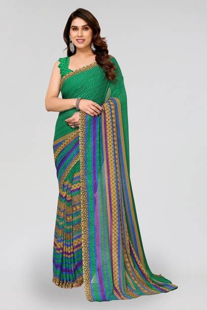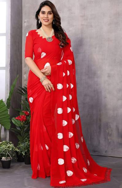 The georgette sarees are known for their grace and easy-to-drape quality. These sarees have a translucent, crinkled surface that makes it recognisable as a fabric. Such sarees are lightweight and convenient to wear for long hours. Flowing and gossamer-like, these sarees are breathable and keep you feeling cool even during the summer season. You can browse the collection of the latest georgette sarees and choose from various colours, prints, weaves, and combinations. You can select from floral print, hand-painted, embroidered, block printed, polka print, and many more in terms of patterns. Opt for different styles of sarees according to your requirements and the occasion. Choose from regular sari, stitched sari, lehenga sari, half and half sari, and many more. Opt for multi-coloured printed leheriya saree decorated with gota from Nimisha Fashion or striped and polka saree hand from Anand Sarees. Other brands you can choose these gorgeous georgette drapes from are SAARA, Fabwomen, Divastri, Varanga, 3SIX5, and more. You can also gift these beautiful weaves to your family and friends during special occasions and. Pick your favourite georgette sarees online and have them delivered to your doorstep. The information you are reading has been last updated on 21-Oct-25.