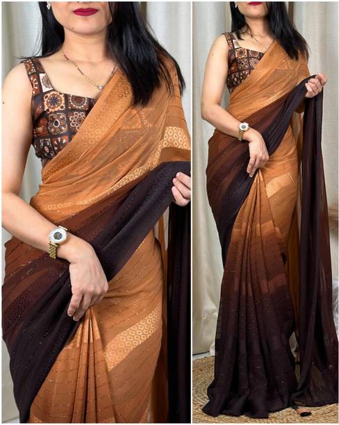 The georgette sarees are known for their grace and easy-to-drape quality. These sarees have a translucent, crinkled surface that makes it recognisable as a fabric. Such sarees are lightweight and convenient to wear for long hours. Flowing and gossamer-like, these sarees are breathable and keep you feeling cool even during the summer season. You can browse the collection of the latest georgette sarees and choose from various colours, prints, weaves, and combinations. You can select from floral print, hand-painted, embroidered, block printed, polka print, and many more in terms of patterns. Opt for different styles of sarees according to your requirements and the occasion. Choose from regular sari, stitched sari, lehenga sari, half and half sari, and many more. Opt for multi-coloured printed leheriya saree decorated with gota from Nimisha Fashion or striped and polka saree hand from Anand Sarees. Other brands you can choose these gorgeous georgette drapes from are SAARA, Fabwomen, Divastri, Varanga, 3SIX5, and more. You can also gift these beautiful weaves to your family and friends during special occasions and. Pick your favourite georgette sarees online and have them delivered to your doorstep. The information you are reading has been last updated on 15-Apr-26.