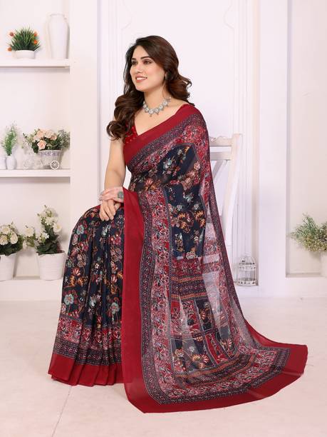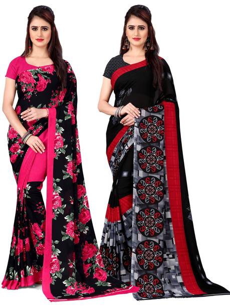 The georgette sarees are known for their grace and easy-to-drape quality. These sarees have a translucent, crinkled surface that makes it recognisable as a fabric. Such sarees are lightweight and convenient to wear for long hours. Flowing and gossamer-like, these sarees are breathable and keep you feeling cool even during the summer season. You can browse the collection of the latest georgette sarees and choose from various colours, prints, weaves, and combinations. You can select from floral print, hand-painted, embroidered, block printed, polka print, and many more in terms of patterns. Opt for different styles of sarees according to your requirements and the occasion. Choose from regular sari, stitched sari, lehenga sari, half and half sari, and many more. Opt for multi-coloured printed leheriya saree decorated with gota from Nimisha Fashion or striped and polka saree hand from Anand Sarees. Other brands you can choose these gorgeous georgette drapes from are SAARA, Fabwomen, Divastri, Varanga, 3SIX5, and more. You can also gift these beautiful weaves to your family and friends during special occasions and. Pick your favourite georgette sarees online and have them delivered to your doorstep. The information you are reading has been last updated on 27-Jan-26.