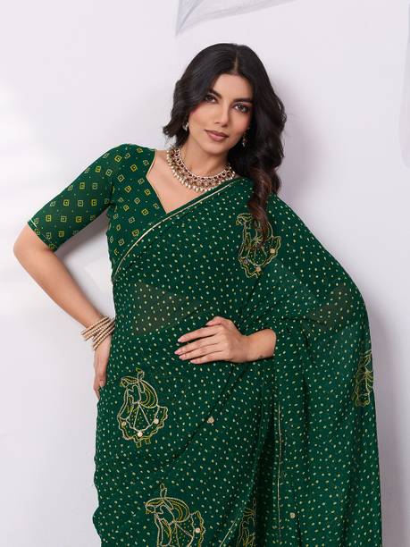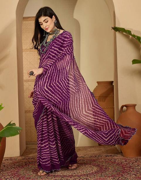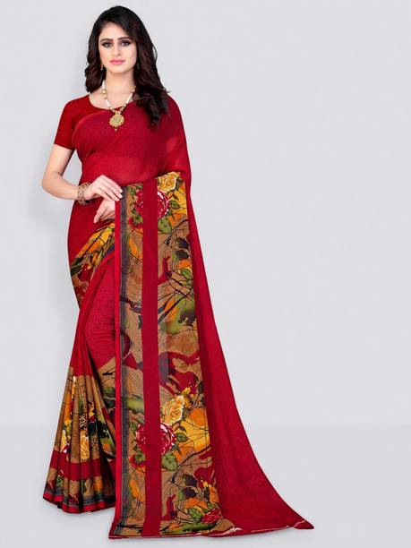 The georgette sarees are known for their grace and easy-to-drape quality. These sarees have a translucent, crinkled surface that makes it recognisable as a fabric. Such sarees are lightweight and convenient to wear for long hours. Flowing and gossamer-like, these sarees are breathable and keep you feeling cool even during the summer season. You can browse the collection of the latest georgette sarees and choose from various colours, prints, weaves, and combinations. You can select from floral print, hand-painted, embroidered, block printed, polka print, and many more in terms of patterns. Opt for different styles of sarees according to your requirements and the occasion. Choose from regular sari, stitched sari, lehenga sari, half and half sari, and many more. Opt for multi-coloured printed leheriya saree decorated with gota from Nimisha Fashion or striped and polka saree hand from Anand Sarees. Other brands you can choose these gorgeous georgette drapes from are SAARA, Fabwomen, Divastri, Varanga, 3SIX5, and more. You can also gift these beautiful weaves to your family and friends during special occasions and. Pick your favourite georgette sarees online and have them delivered to your doorstep. The information you are reading has been last updated on 08-Jan-26.