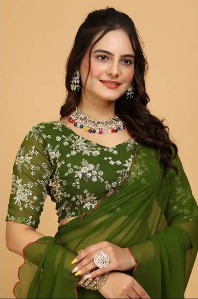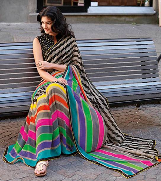 The georgette sarees are known for their grace and easy-to-drape quality. These sarees have a translucent, crinkled surface that makes it recognisable as a fabric. Such sarees are lightweight and convenient to wear for long hours. Flowing and gossamer-like, these sarees are breathable and keep you feeling cool even during the summer season. You can browse the collection of the latest georgette sarees and choose from various colours, prints, weaves, and combinations. You can select from floral print, hand-painted, embroidered, block printed, polka print, and many more in terms of patterns. Opt for different styles of sarees according to your requirements and the occasion. Choose from regular sari, stitched sari, lehenga sari, half and half sari, and many more. Opt for multi-coloured printed leheriya saree decorated with gota from Nimisha Fashion or striped and polka saree hand from Anand Sarees. Other brands you can choose these gorgeous georgette drapes from are SAARA, Fabwomen, Divastri, Varanga, 3SIX5, and more. You can also gift these beautiful weaves to your family and friends during special occasions and. Pick your favourite georgette sarees online and have them delivered to your doorstep. The information you are reading has been last updated on 11-Nov-25.
