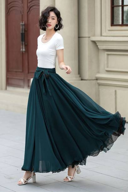 Georgette skirts are the most iconic and feminine staple of a woman’s wardrobe. As the fashion arena advanced, the design of the skirt has been transformed to align with wearers’ requirements. This attire is available in various types, including flared, regular, pleated, A-line, wrap-around, gathered, and more. Besides bright colours, you can also opt for a pleasing pastel hue skirt with dreamy volumes that gives you a delightful festive look. Tailored in georgette, the skirt can be paired with a matching blouse for a glam look. Some brands that sell this attire online are Anvi Be Yourself, BeF Fashion, Cation, Fabrify, and many more. Skirt fashion is a way to look effortlessly chic. This garment can be styled in multiple ways to achieve a plethora of looks for various occasions. According to your comfort, you can choose a skirt with length options like below knee/midi, above knee length, mid-calf length, maxi/long, mini/short length, full length, and others. The skirt outfits are fun and versatile to be worn on a casual day out with friends. Solid, chequered, floral print, geometric print, embroidered, and embellished are some of the patterns of skirts available online. Choose a georgette skirt that looks feminine, fun, sophisticated, and chic and add it to your collection.