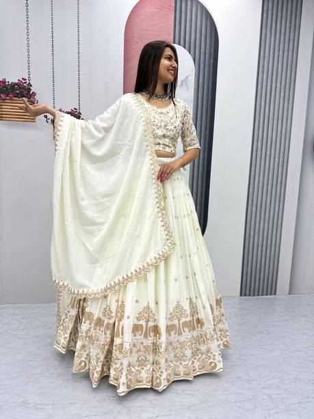 A beautiful ghagra choli can give you a stunning look, no matter the occasion. All it takes to stand out in a crowd is a swish of a long skirt and a stunning flowing dupatta. Lehenga choli is a traditional Indian dress worn by girls and women of all ages. Lehengas come in a variety of styles and colours. A lehenga may be styled and worn for every occasion. You can wear a white shirt, full-sleeved designer blouse, turtleneck crop top, or even a tube top with it. Choose from a variety of the latest ghagra choli from A T vaghasiya, AARADHYAM, ALROZA, anara, and much more available in various styles and colours. Choose from cotton, net, silk, and various other fabrics for your lehenga cholis. Silk lehenga choli is the best choice for you if you want to wear a lehenga that is both classy and refined. You can choose from a readymade option or a semi-stitched one that can be customised as per your requirements. Opt for off-shoulder, full sleeves, sleeveless, or short-sleeved choli. You can find a simple ghagra choli for a family event or a heavily embroidered lehenga for a wedding. Choose your favourite lehenga and place your order online to enjoy a stress-free shopping experience. The information you are reading has been last updated on 07-Oct-25.