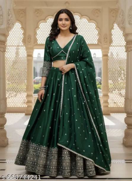 Look beautiful in gorgeous ghagra dresses available online. These glamorous traditional attires look amazing for marriage ceremonies, traditional family events, social gatherings, and family get-togethers. Dazzle your look in these latest ghagra dresses in beautiful patterns like Rajasthani poshak, lehenga and crop top, lehenga choli, lehenga with jackets, lehenga and kurta, and more. These ethnic looks go best with jhumkas, tikkas, bejewelled bangles, necklaces, and more. Check out dazzling colours like blue, red, black, pink, green, golden, silver, and multiple colours. Choose from full-sleeved, half-sleeved, three-fourth sleeves, short-sleeved, and sleeveless options for different seasonal looks. You can mix and create different looks with embellished borders, red and gold thread works, brocades, etc. These ghagras can turn heads. Add your unique look to the dress by choosing embroidered, embellished, printed, geometric prints, applique, striped, and floral print patterns. Get your perfect sizes from XS to 7XL to fit you comfortably. Wear your favourite ghagra dresses in velvet, silk, raw silk, lace, poly-nylon, chiffon, georgette, viscose blend, and many other lavish fabrics. For the best looks, check out popular brands like LOGO OF ALPHABET A, Biba, MIMOSA, Mlux enterprise, and MENIX. The information you are reading has been last updated on 19-Jan-26.