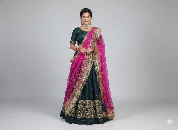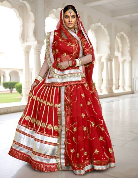 Ghagra for weddings is undoubtedly one of the more popular choices for D-day trousseau. You can choose from an attractive collection of beautiful designs and vivid colours for your bridal wear. When it comes to the fabric, you can choose from net, velvet, silk blend, pure silk, satin blend, art silk, taffeta, jacquard, and georgette blend. With time, the designs of the traditional ghagra have also evolved. You can choose from the (latest) ghagra for wedding new collections at the best price and explore the various offers. There are numerous patterns such as printed, checkered, striped, leheriya, embroidered, embellished, floral print, digital print etc. You can select them with or without a dupatta as per your personal choice. You can also choose from theme-based designs such as leheriya, gold accents, and floral gradation. To make your ghagra for wedding look more elegant, you can choose from several options in patterns like embroidered, self-design, embellished, solid, printed, floral print, applique, checkered, and more. You can also wear these ghagras for family functions and festivals. Choose from different sleeve options such as full sleeve, half sleeve, short sleeve, or sleeveless. Choose from trusted brands such as 3SIX5, TRIADH FAB, Hellaro Export, Aadhyanta, Dipzon villa, etc. Place your order online for doorstep delivery. The information you are reading has been last updated on 27-Dec-25.