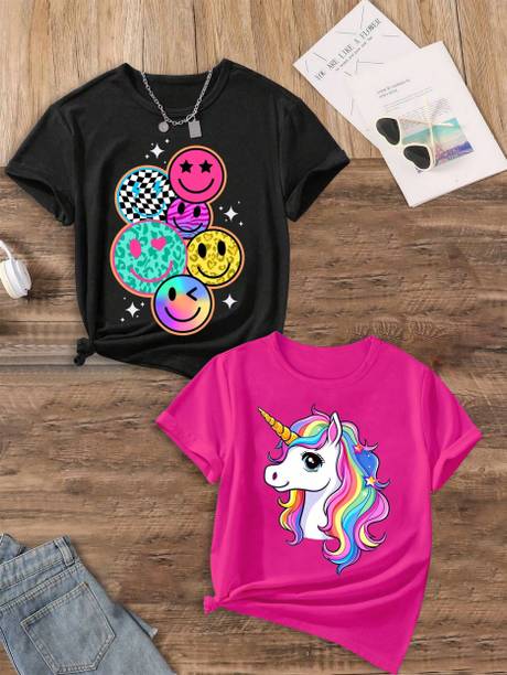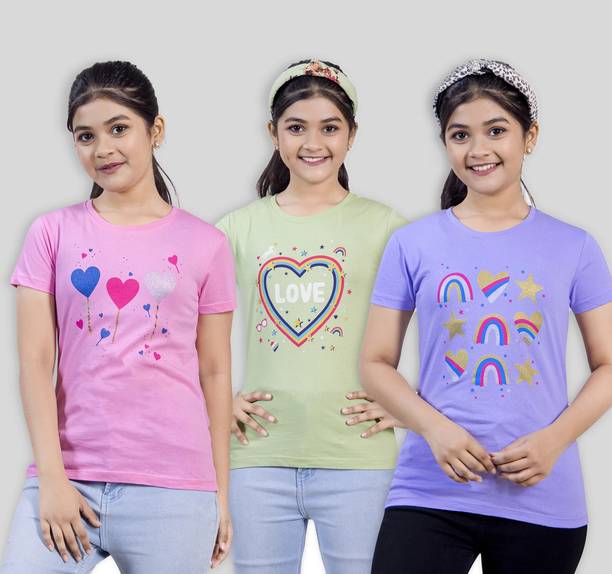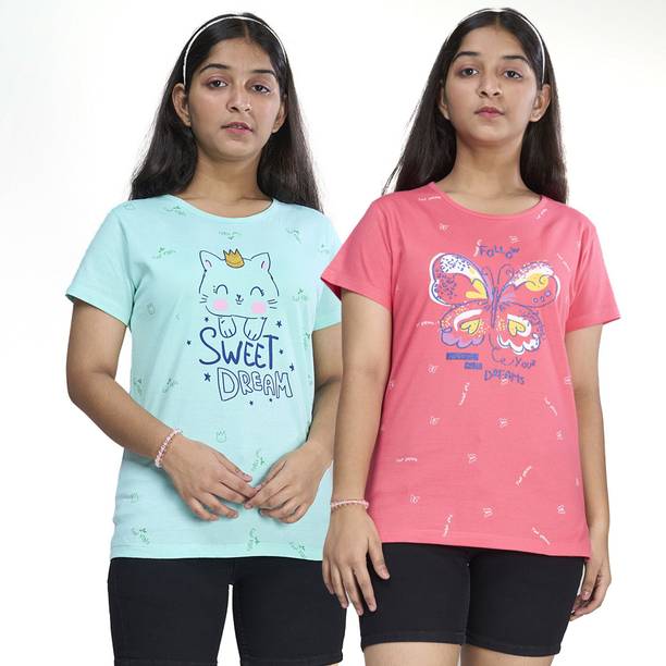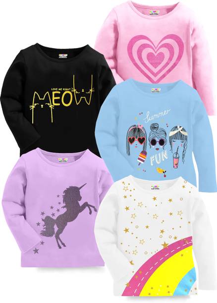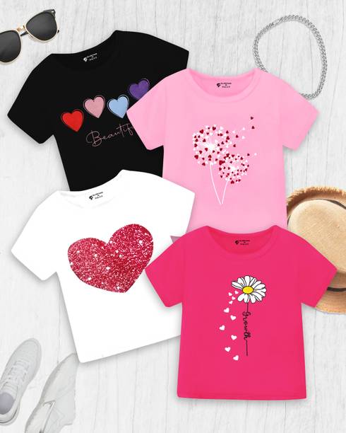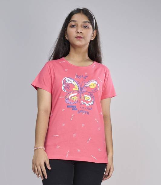 Brighten your little one's everyday look with this collection of t-shirts for girls. Designed with beautiful detailing, embellishments, cute character prints, and embroidery, these tees are available in multipacks as well as singles. Style printed or solid tees can be paired with shorts for your princess's playtime, while her favorite cartoon character print with a cute skirt will be an excellent attire for her story-time. Buy girls' t-shirts online from popular brands like Kuchipoo, x2o, Billion, GIRLS SHOPPIE, Gini & Jony, and more. Choose from a range of styling options like, short-sleeved, long-sleeved, sleeveless, and a variety of neck styles. You can also choose from a range of vibrant colours and designs to add a fun touch to playdates and daily dress-up routine. Upgrade your little girls' wardrobe with tees she'll adore. Pair them with denim, skirts, shorts, capris, dungarees, and more. Add some chic accessories like matching headbands, clips, and footwear to complement the overall look.