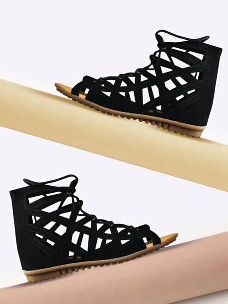 If high heels appeal to you the most, rock the next Saturday party with these Flat n Heels Women Black Heels . These heels are a unique combination of gladiator sandals and high heels. They are also available in two more shades—Dark blue and Gold.