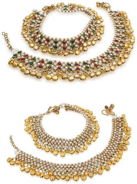 If your dreams are inspired by the cinematic antics of Bollywood, your significant crush would mark her arrival by gracefully running over a meadow of sunflowers, flinging her shawl in the air and garnering your attention with the sound of her clinking anklets. Since time immemorial, gold anklets have been prominent accessories in every woman’s drawer. These anklets can be worn along with your favorite top and skirt for a casual look. Anklets that are made from leather have been trending not just among women but also among men owing to their simplistic charm. You don’t have to bear the push and pull of crowded shopping streets to search for them as you can buy anklets online from the comfort of your home. Pick from an extensive range of ankle bracelets online. Some of the popular brands that sell anklets include Sukkhi, Yellow Chimes, Nisa Pearls, Mehrunnisa, 19 Likes, and Gimmicks. Owing to an exquisite variety that’s available online, here is a comprehensive guide to help you buy the perfect anklets to adorn your feet with.