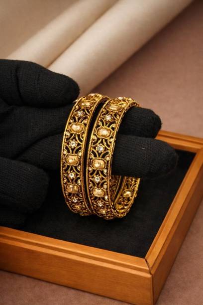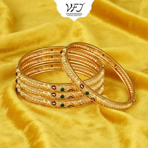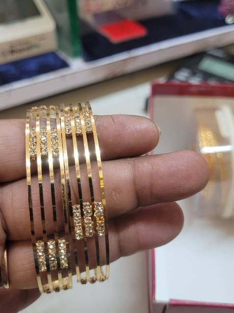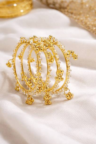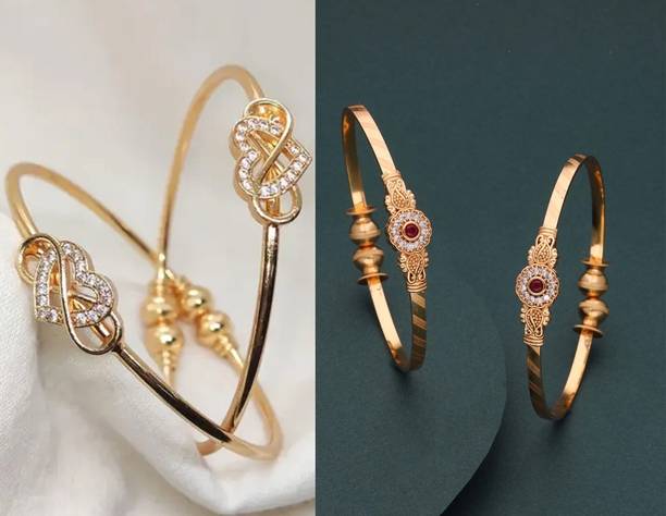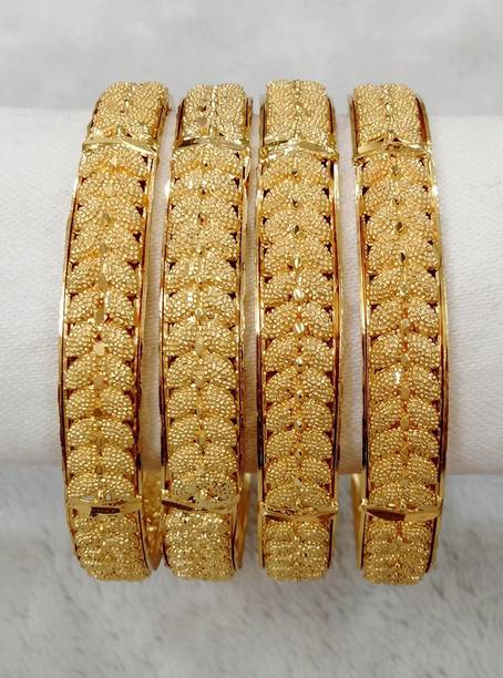 Are you looking for new ornaments to add to your collection? If yes, then you can have a look at the stunning gold-plated bangles available online. With eye-catching gold bangle designs, these ornaments can help you stand apart from the crowd. You can get bangles of various patterns, sizes, finishes, and designs available online at varied price options. Additionally, you can also get a variety of trendy gold-plated bangles made of brass, alloy, alloy crystal, etc. You can choose these bangles as per your needs and preferences. Furthermore, you can choose from stunning add-ons in these bangles, such as pearls, cubic zirconia, gemstones, diamonds, etc. From contemporary, ethnic, classic, or traditional varieties, you can choose attractive bangles that suit your personality. In addition, you can stock up your best jewellery collection based on the occasion, whether wedding, party, casual, or formal. Apart from that, you can get several designs of gold-plated bangles for daily wear that offer a minimalistic look. You can explore the latest online gold bangle design catalogue of various brands such as Niva Fashion, Subh Impex, Shiv Fashion, Vinisha Fashion, DH Jewels, and many more. Place your order online and get a hassle-free delivery at the convenience of your home.List of Gold Bangles Prices Last Updated on:13-Mar-26.