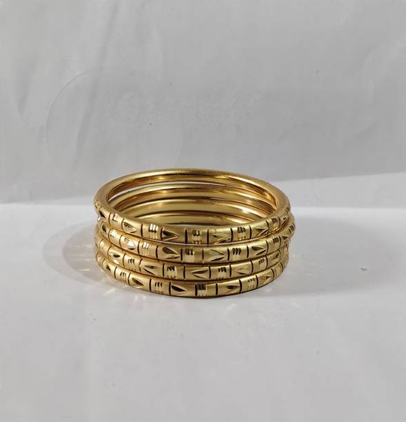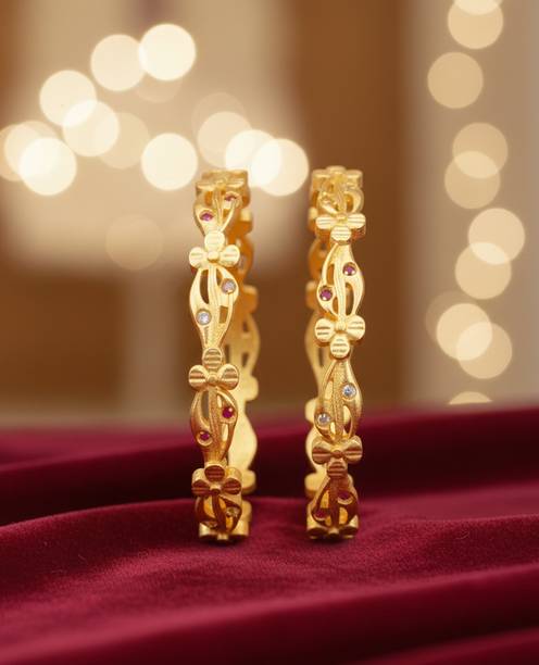 Adorn your wrists with gorgeous jewellery pieces and amp up your traditional look effortlessly. Shop online from a plethora of gold bangle designs so you can find something that suits your taste. The elegant bangles can be found in different themes, like stackable bracelets, charm jewellery, studded polki, chunky chains, and more. Check out all the options and choose the ones that suit you the best. The classy ornaments feature intricate motifs that create attractive patterns, grabbing the onlookers’ attention instantly. Bracelets encrusted with precious gemstones are also available online. You can swipe and select from various trendy options, including cubic zirconia, beads, pearls, ruby, moonstone, garnet, turquoise, and diamond. It is recommended to refer to the product specifications to learn more about the base material, ornament size, type of clasp and plating used, price range, and so on. You can keep up with the latest fashion trends by exploring stunning gold bangle designs online to add a touch of elegance to your ensemble. The timeless jewellery exudes a radiant charm, making you stand out in a crowd. Popular brands like Shivarth, Ashu Enterprises, Gift Nest, Jewar Mandi, Raviour Lifestyle, and others offer mesmerising adornments for women online. Shop online and enjoy hassle-free doorstep delivery.