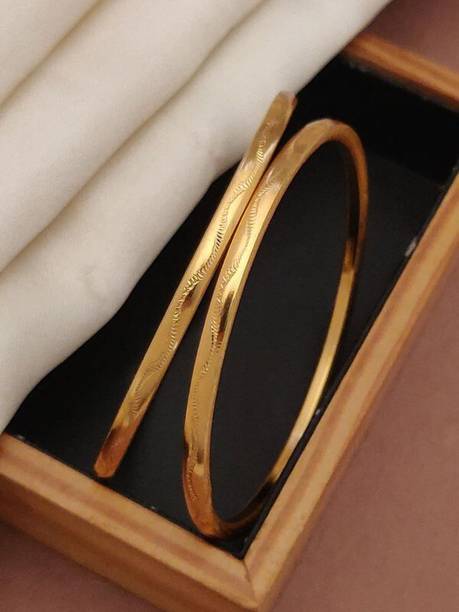 Are you looking for new ornaments to add to your collection? If yes, then you can have a look at the stunning gold-plated bangles available online. With eye-catching gold bangle designs, these ornaments can help you stand apart from the crowd. You can get bangles of various patterns, sizes, finishes, and designs available online at varied price options. Additionally, you can also get a variety of trendy gold-plated bangles made of brass, alloy, alloy crystal, etc. You can choose these bangles as per your needs and preferences. Furthermore, you can choose from stunning add-ons in these bangles, such as pearls, cubic zirconia, gemstones, diamonds, etc. From contemporary, ethnic, classic, or traditional varieties, you can choose attractive bangles that suit your personality. In addition, you can stock up your best jewellery collection based on the occasion, whether wedding, party, casual, or formal. Apart from that, you can get several designs of gold-plated bangles for daily wear that offer a minimalistic look. You can explore the latest online gold bangle design catalogue of various brands such as Niva Fashion, Subh Impex, Shiv Fashion, Vinisha Fashion, DH Jewels, and many more. Place your order online and get a hassle-free delivery at the convenience of your home.List of Gold Bangles Prices Last Updated on:27-Feb-26.
