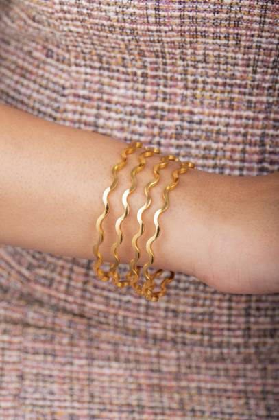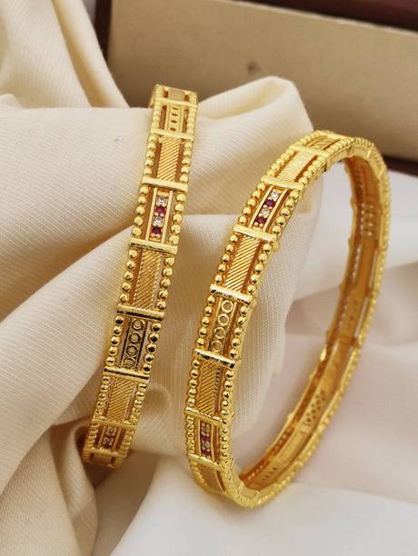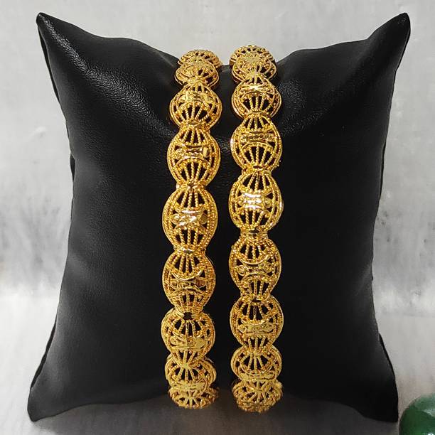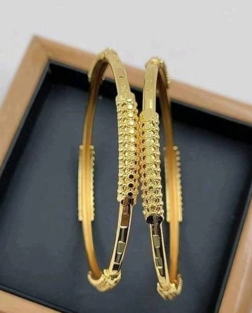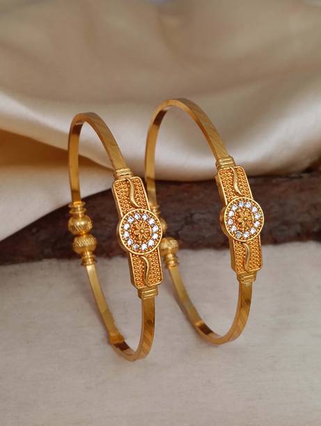 Are you looking for new ornaments to add to your collection? If yes, then you can have a look at the stunning gold-plated bangles available online. With eye-catching gold bangle designs, these ornaments can help you stand apart from the crowd. You can get bangles of various patterns, sizes, finishes, and designs available online at varied price options. Additionally, you can also get a variety of trendy gold-plated bangles made of brass, alloy, alloy crystal, etc. You can choose these bangles as per your needs and preferences. Furthermore, you can choose from stunning add-ons in these bangles, such as pearls, cubic zirconia, gemstones, diamonds, etc. From contemporary, ethnic, classic, or traditional varieties, you can choose attractive bangles that suit your personality. In addition, you can stock up your best jewellery collection based on the occasion, whether wedding, party, casual, or formal. Apart from that, you can get several designs of gold-plated bangles for daily wear that offer a minimalistic look. You can explore the latest online gold bangle design catalogue of various brands such as Niva Fashion, Subh Impex, Shiv Fashion, Vinisha Fashion, DH Jewels, and many more. Place your order online and get a hassle-free delivery at the convenience of your home.List of Gold Bangles Prices Last Updated on:08-Oct-25.