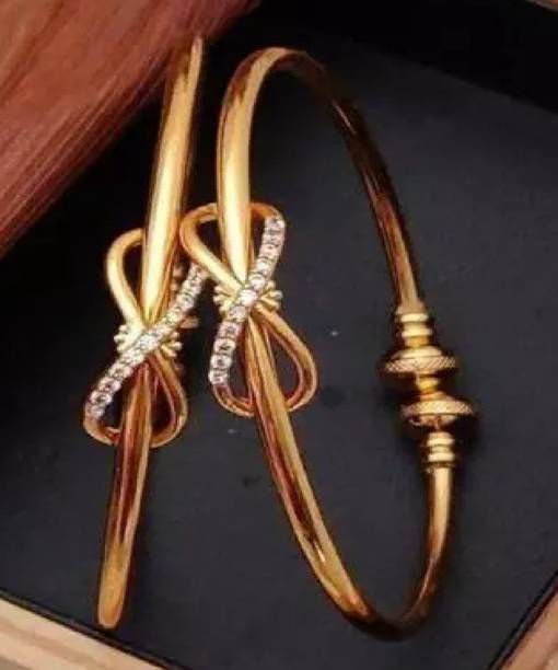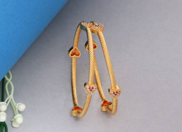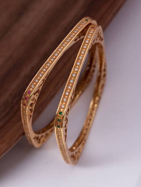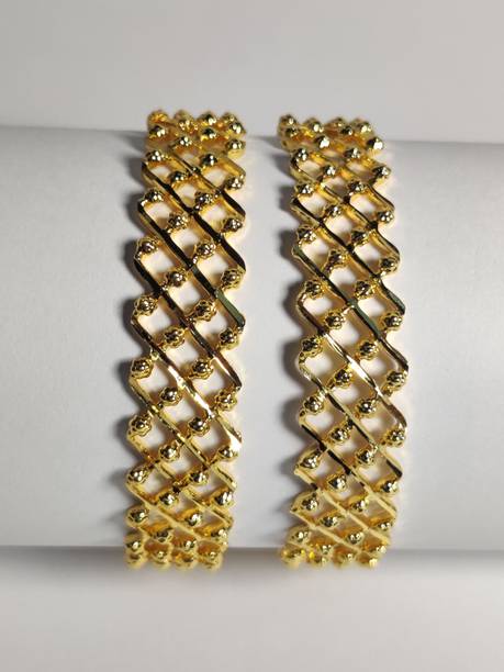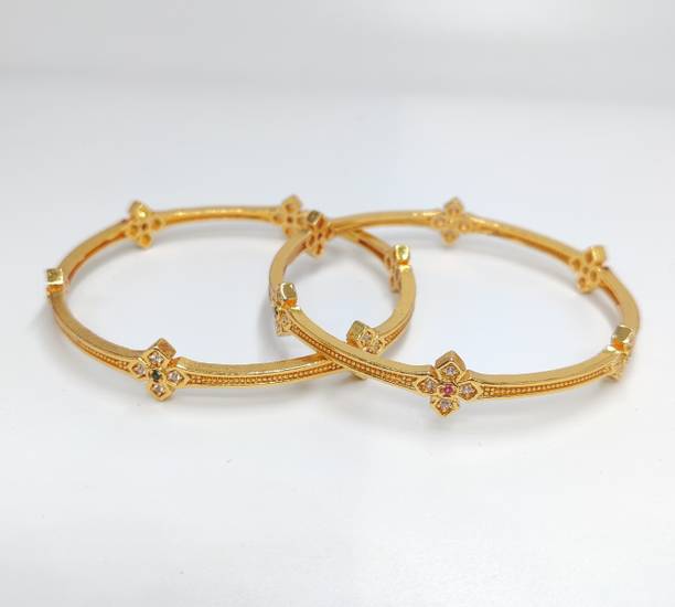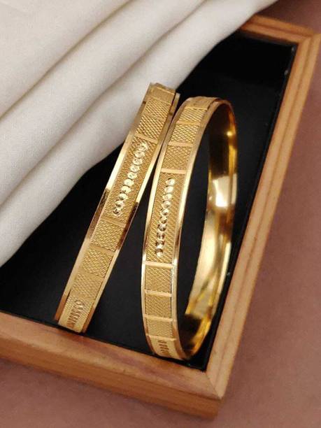 Are you looking for new ornaments to add to your collection? If yes, then you can have a look at the stunning gold-plated bangles available online. With eye-catching gold bangle designs, these ornaments can help you stand apart from the crowd. You can get bangles of various patterns, sizes, finishes, and designs available online at varied price options. Additionally, you can also get a variety of trendy gold-plated bangles made of brass, alloy, alloy crystal, etc. You can choose these bangles as per your needs and preferences. Furthermore, you can choose from stunning add-ons in these bangles, such as pearls, cubic zirconia, gemstones, diamonds, etc. From contemporary, ethnic, classic, or traditional varieties, you can choose attractive bangles that suit your personality. In addition, you can stock up your best jewellery collection based on the occasion, whether wedding, party, casual, or formal. Apart from that, you can get several designs of gold-plated bangles for daily wear that offer a minimalistic look. You can explore the latest online gold bangle design catalogue of various brands such as Niva Fashion, Subh Impex, Shiv Fashion, Vinisha Fashion, DH Jewels, and many more. Place your order online and get a hassle-free delivery at the convenience of your home.List of Gold Bangles Prices Last Updated on:10-Oct-25.
