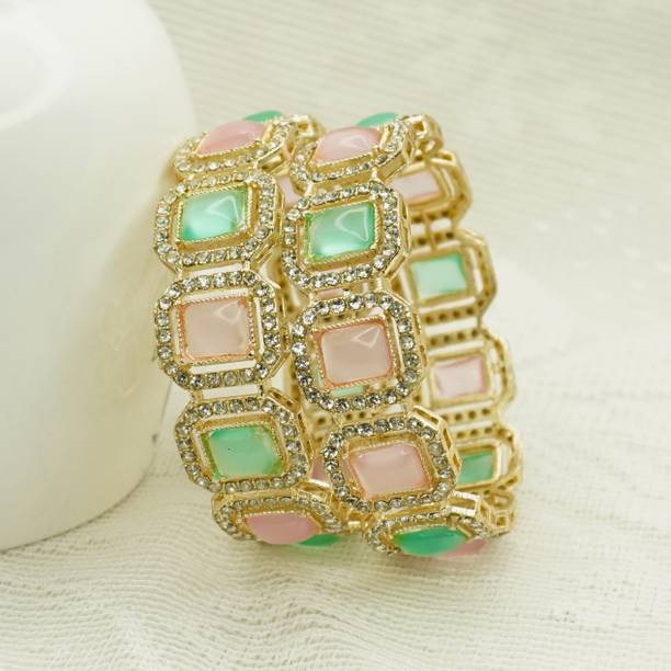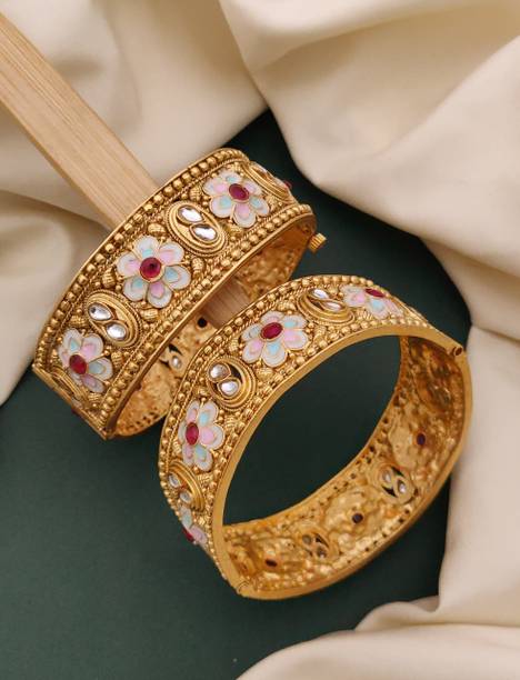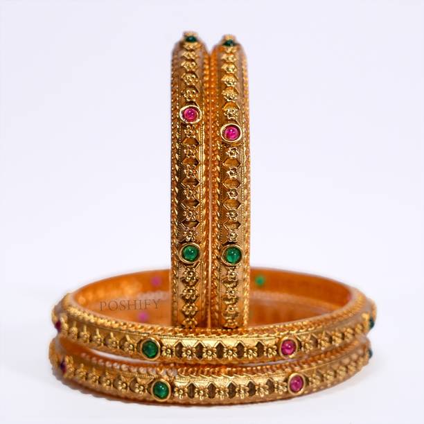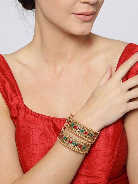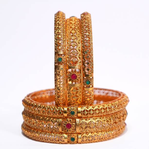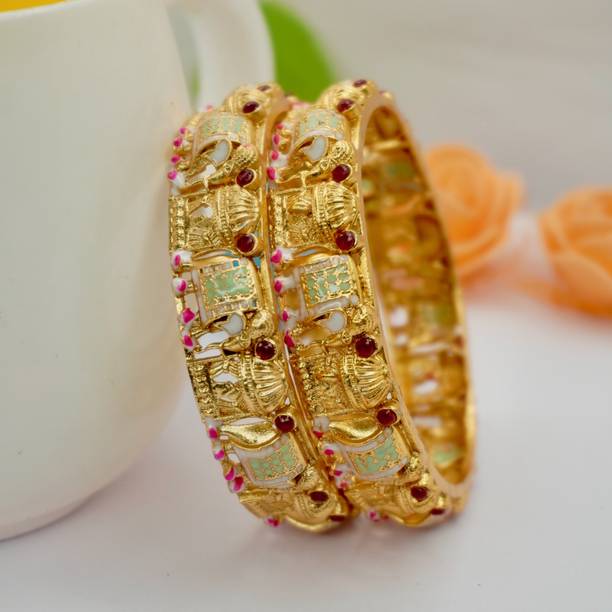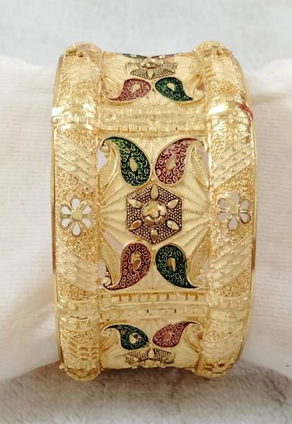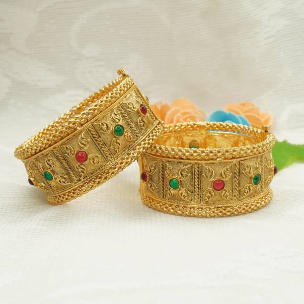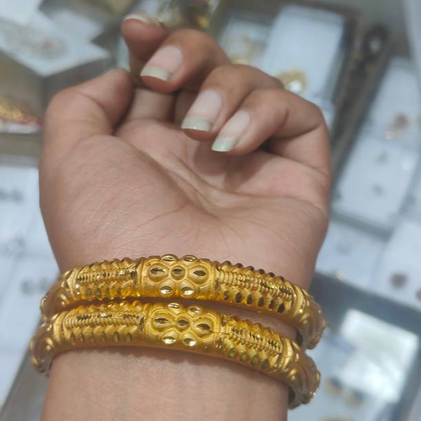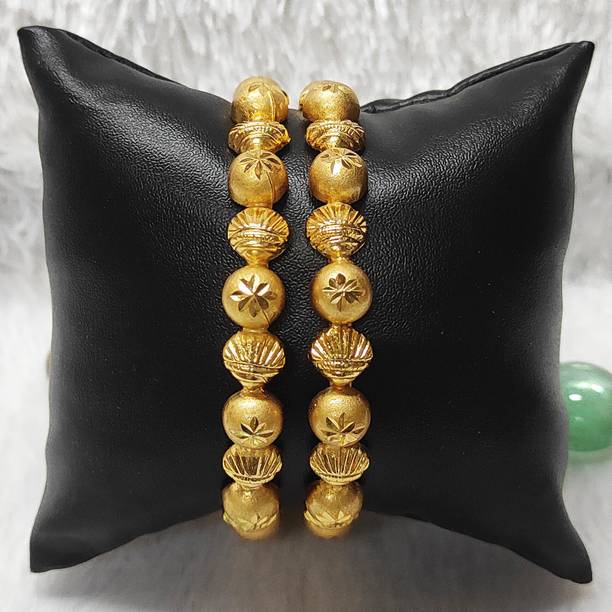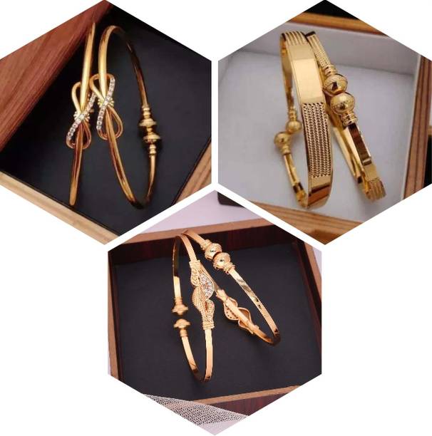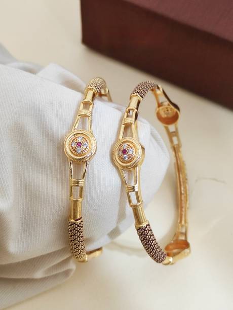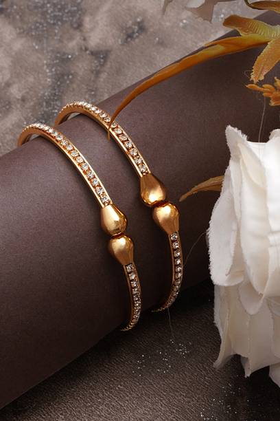 Are you looking for new ornaments to add to your collection? If yes, then you can have a look at the stunning gold-plated bangles available online. With eye-catching gold bangle designs, these ornaments can help you stand apart from the crowd. You can get bangles of various patterns, sizes, finishes, and designs available online at varied price options. Additionally, you can also get a variety of trendy gold-plated bangles made of brass, alloy, alloy crystal, etc. You can choose these bangles as per your needs and preferences. Furthermore, you can choose from stunning add-ons in these bangles, such as pearls, cubic zirconia, gemstones, diamonds, etc. From contemporary, ethnic, classic, or traditional varieties, you can choose attractive bangles that suit your personality. In addition, you can stock up your best jewellery collection based on the occasion, whether wedding, party, casual, or formal. Apart from that, you can get several designs of gold-plated bangles for daily wear that offer a minimalistic look. You can explore the latest online gold bangle design catalogue of various brands such as Niva Fashion, Subh Impex, Shiv Fashion, Vinisha Fashion, DH Jewels, and many more. Place your order online and get a hassle-free delivery at the convenience of your home.List of Gold Bangles Prices Last Updated on:09-Oct-25.