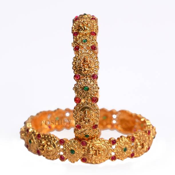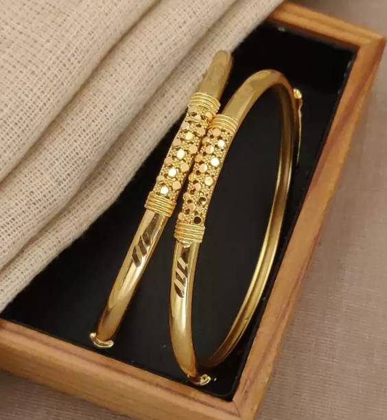 Are you looking for new ornaments to add to your collection? If yes, then you can have a look at the stunning gold-plated bangles available online. With eye-catching gold bangle designs, these ornaments can help you stand apart from the crowd. You can get bangles of various patterns, sizes, finishes, and designs available online at varied price options. Additionally, you can also get a variety of trendy gold-plated bangles made of brass, alloy, alloy crystal, etc. You can choose these bangles as per your needs and preferences. Furthermore, you can choose from stunning add-ons in these bangles, such as pearls, cubic zirconia, gemstones, diamonds, etc. From contemporary, ethnic, classic, or traditional varieties, you can choose attractive bangles that suit your personality. In addition, you can stock up your best jewellery collection based on the occasion, whether wedding, party, casual, or formal. Apart from that, you can get several designs of gold-plated bangles for daily wear that offer a minimalistic look. You can explore the latest online gold bangle design catalogue of various brands such as Niva Fashion, Subh Impex, Shiv Fashion, Vinisha Fashion, DH Jewels, and many more. Place your order online and get a hassle-free delivery at the convenience of your home.List of Gold Bangles Prices Last Updated on:08-Oct-25.