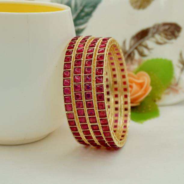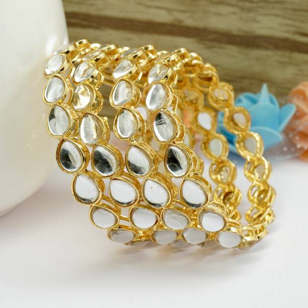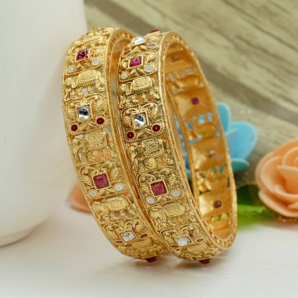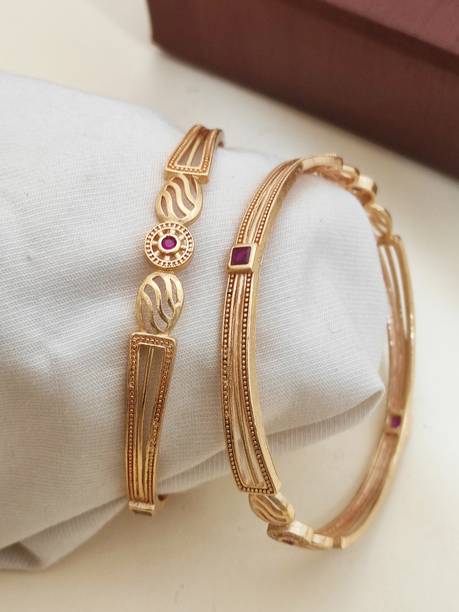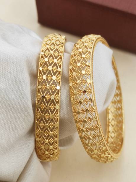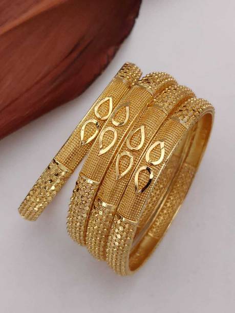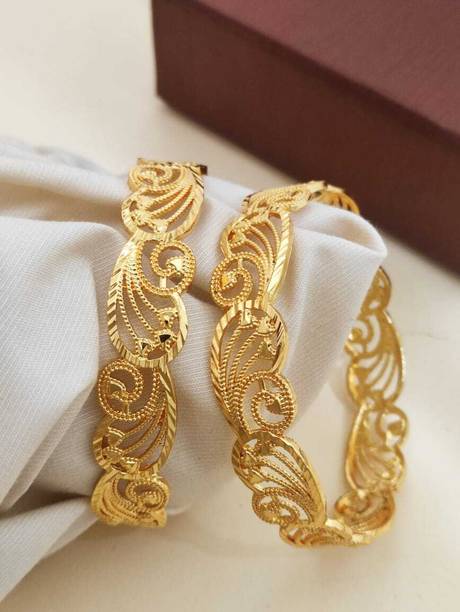 Are you looking for new ornaments to add to your collection? If yes, then you can have a look at the stunning gold-plated bangles available online. With eye-catching gold bangle designs, these ornaments can help you stand apart from the crowd. You can get bangles of various patterns, sizes, finishes, and designs available online at varied price options. Additionally, you can also get a variety of trendy gold-plated bangles made of brass, alloy, alloy crystal, etc. You can choose these bangles as per your needs and preferences. Furthermore, you can choose from stunning add-ons in these bangles, such as pearls, cubic zirconia, gemstones, diamonds, etc. From contemporary, ethnic, classic, or traditional varieties, you can choose attractive bangles that suit your personality. In addition, you can stock up your best jewellery collection based on the occasion, whether wedding, party, casual, or formal. Apart from that, you can get several designs of gold-plated bangles for daily wear that offer a minimalistic look. You can explore the latest online gold bangle design catalogue of various brands such as Niva Fashion, Subh Impex, Shiv Fashion, Vinisha Fashion, DH Jewels, and many more. Place your order online and get a hassle-free delivery at the convenience of your home.List of Gold Bangles Prices Last Updated on:06-Oct-25.