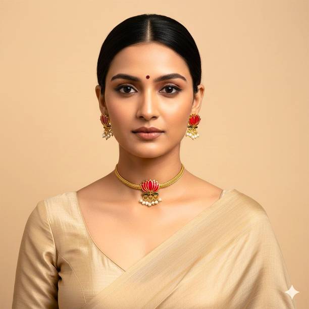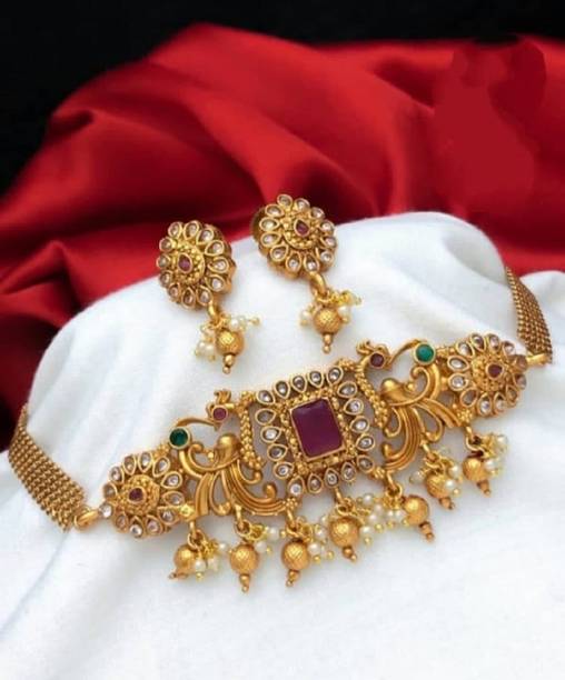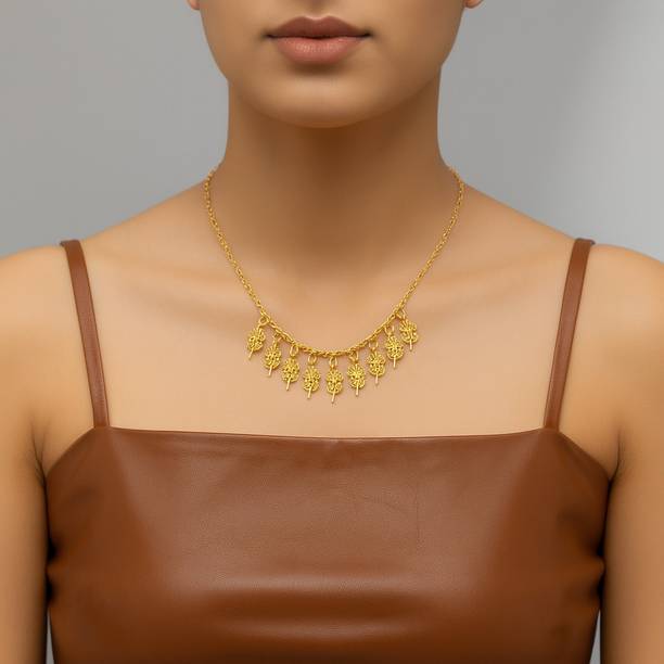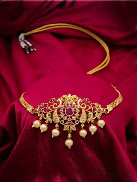 If making a grand style statement is your forte, don’t hold back. Embrace special occasions with gold choker necklaces which boast elaborate designs. Brands like Sukkhi have a notable collection of statement precious choker necklaces. An example of their remarkable work is the Sukkhi Exquisite Peacock gold-plated necklace. This neck-piece features a regal-looking peacock as its pendant. This majestic bird is adorned with jewels in different colors. The necklace’s thick gold-plated chain adds to its grandeur. Gold-plated choker necklaces which are adorned with colorful flowers are another pretty choice. These chains accentuate the delicateness of your neck and add a feminine touch to any outfit they are worn with.