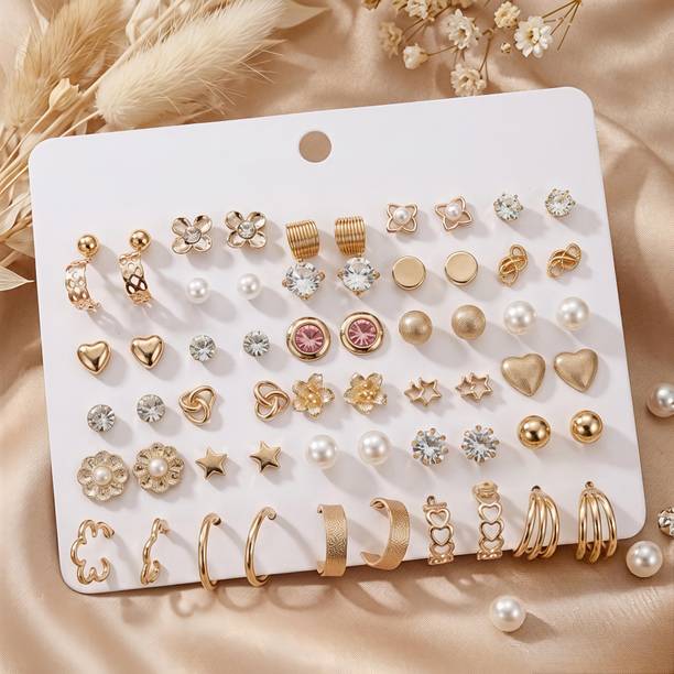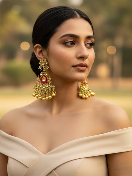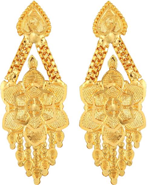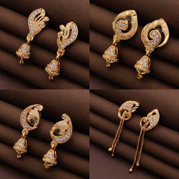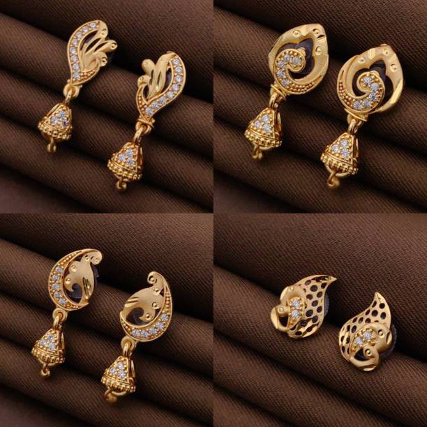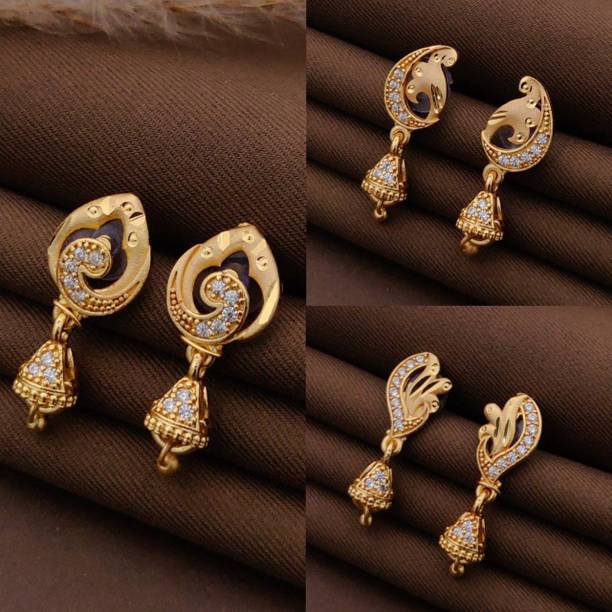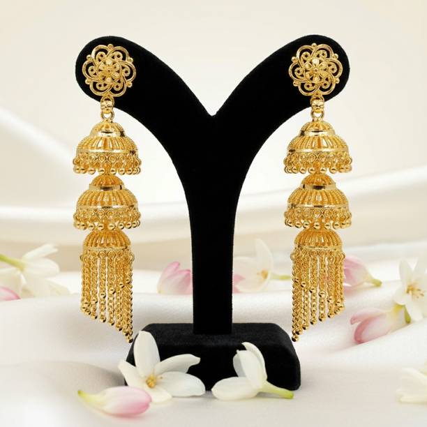 Explore the collection of beautiful gold designer earrings to flaunt at the next special event. These jewellery pieces are exquisitely designed with intricate patterns, carved detailing, and finished off with dazzling golden colour. You can wear these gold-toned earrings to wedding functions to suit the grand vibe of the occasion. These earrings can go well with your designer sarees, as well as traditional sarees, and enhance your wedding guest look further. Pair these jewellery options with your ethnic outfits to create a show-stopping festive look which you can don during the festive season. There are several styles of earrings available on online shopping portals. You can pick from simple jhumkas that showcase floral, leaf, peacock, and teardrop patterns. Fancier options such as layered chandbalis, mirror work jhumkas, Kundan studded earrings, and circular dangler earrings can be suitable to wear at parties, sangeet ceremonies, engagements, and receptions. You can also choose elegant gold-toned studs for your daily wear. These simple earrings can add an elegant touch to your ensemble, be it ethnic or western. You can find beautiful designer gold earrings online from brands such as Jewels Galaxy, Vermont, Yellow Chimes, Priyaasi, and The Hawks Corporation. Choose your desired pairs and buy gold designer earrings online across e-stores. The information you are reading has been last updated on 31-Mar-26.