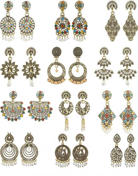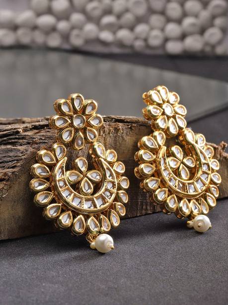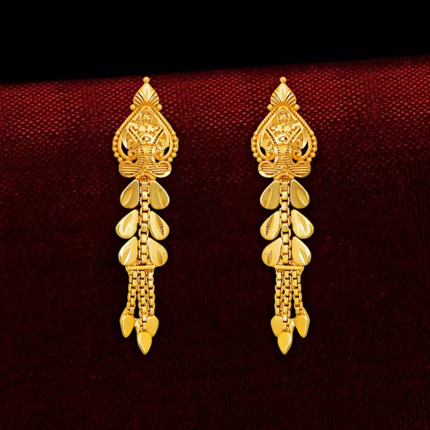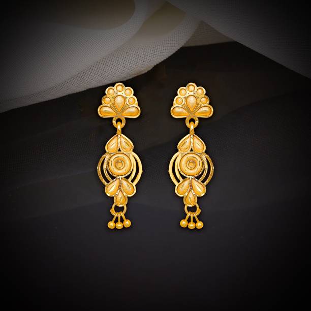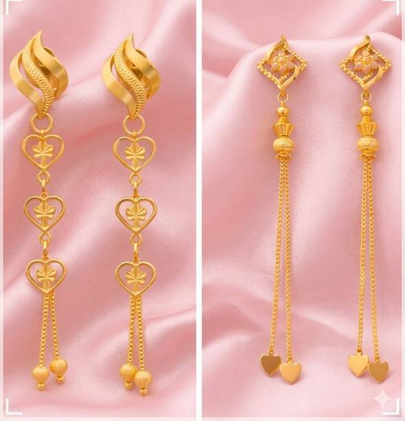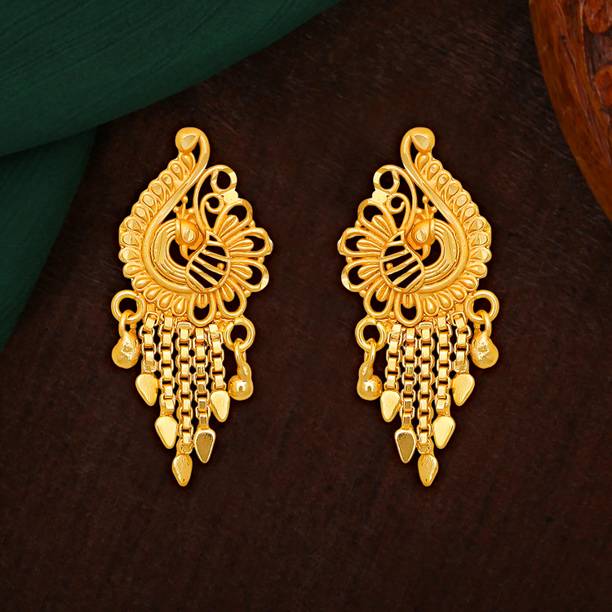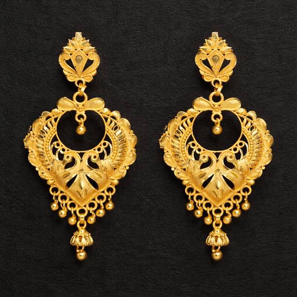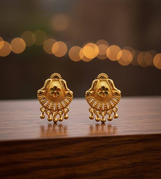Explore the collection of beautiful gold designer earrings to flaunt at the next special event. These jewellery pieces are exquisitely designed with intricate patterns, carved detailing, and finished off with dazzling golden colour. You can wear these gold-toned earrings to wedding functions to suit the grand vibe of the occasion. These earrings can go well with your designer sarees, as well as traditional sarees, and enhance your wedding guest look further. Pair these jewellery options with your ethnic outfits to create a show-stopping festive look which you can don during the festive season. There are several styles of earrings available on online shopping portals. You can pick from simple jhumkas that showcase floral, leaf, peacock, and teardrop patterns. Fancier options such as layered chandbalis, mirror work jhumkas, Kundan studded earrings, and circular dangler earrings can be suitable to wear at parties, sangeet ceremonies, engagements, and receptions. You can also choose elegant gold-toned studs for your daily wear. These simple earrings can add an elegant touch to your ensemble, be it ethnic or western. You can find beautiful designer gold earrings online from brands such as Jewels Galaxy, Vermont, Yellow Chimes, Priyaasi, and The Hawks Corporation. Choose your desired pairs and buy gold designer earrings online across e-stores. The information you are reading has been last updated on 27-Mar-26.