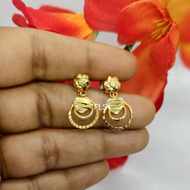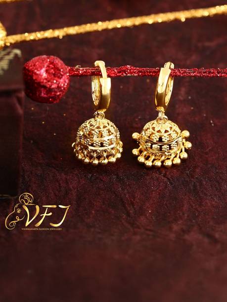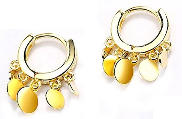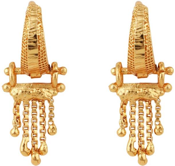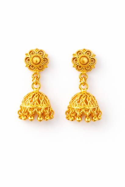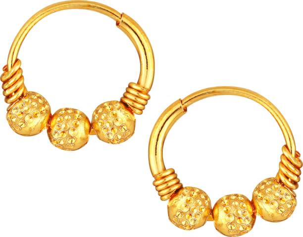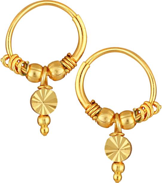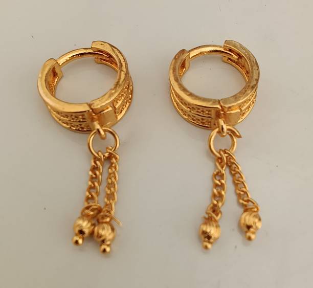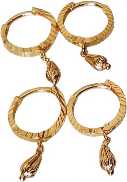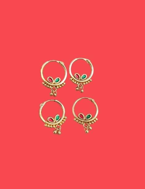 Hoop gold earrings for kids are another interesting choice. They are available in different sizes. Their thickness also varies from pair to pair. Older girl kids have more options to choose from, like gold jhumkis or earrings with tassels.