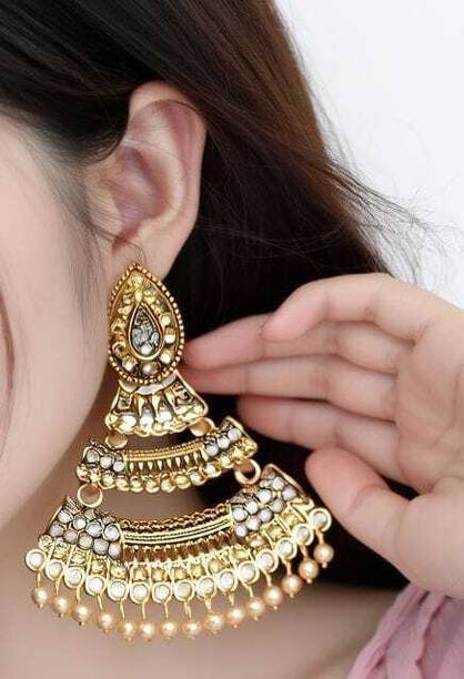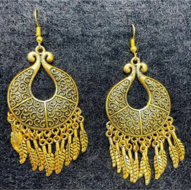If you want to add some jazz to your fusion attire, then you can do so by wearing a pair of gold hanging earrings. So, how do you add some ‘desiness’ to your Western casual attire? You can opt for hanging earrings that have an Indian touch. There are several colourful earrings that are designed in various Indian-inspired motifs.