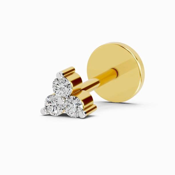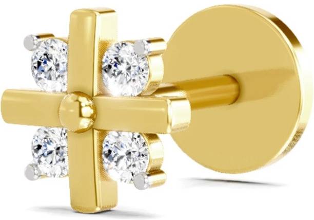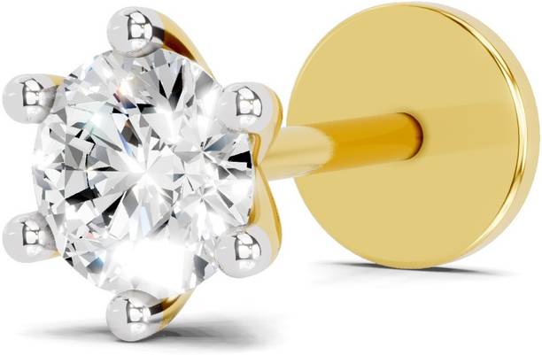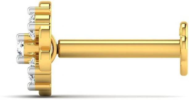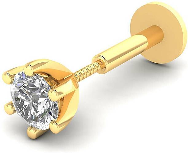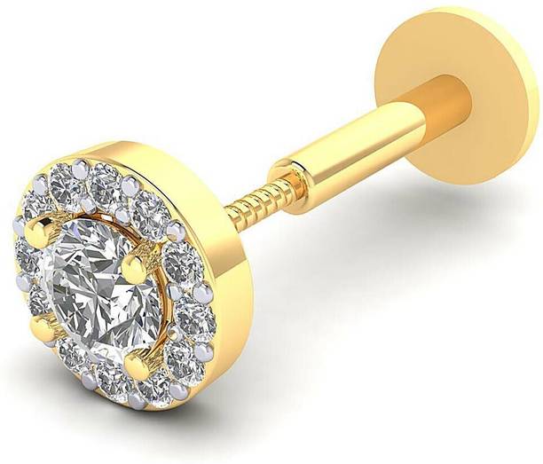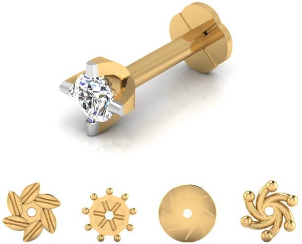A labret nose pin again is a traditional design, which comes in two parts. The first part of the nose pin is where you find a precious stone, or a glass bead, or a metallic ball. This is attached to a hollow, cylindrical stem. The other part of the nose pin is designed like a nail, with a long stem and a flattened base. The stone or metallic ball is attached to the exterior side of your nostril, and it is kept in place with the help of the nail-shaped pin, which provides stability from inside the nostril. Such a gold nose pin is popular among women, as it ensures that the pin remains in its place.