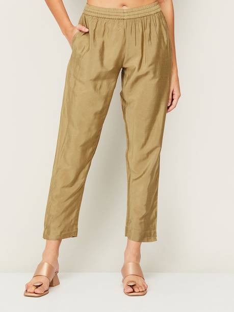 Look your best with gold pants available online. These sleek looking trousers and bottoms go well with all types of casual wear, western attires, and traditional garments. You can pair them up with crop tops, shirts, short kurtas, anarkalis, tees, salwars, and more. You can go for a regular fit, tapered, slim fit, striped, skinny fit, relaxed fit, etc. Check out chic and comfortable designs such as casual trousers, track pants, capris, chinos, cigarette trousers, and more. You can wear them to informal parties, get-togethers, dinner meets, dates, and semi-formal events. These are also ideal for religious festivals, office meetings, and marriages. Available for men, women, boys, and girls, you can get these latest gold pants in matte shades, glimmering patterns, pleated hems, and many other styles. Check out pants with added pockets to help you carry your phone, earphones, sanitisers, etc. You can also look for pants with comfortable closure patterns like fly zippers, buttons, and elastic side zip. Find these gold pants collections in cosy and breathable fabrics like pure linen, cotton, hosiery, cambric, jute, crepe-cotton blend, viscose, rayon, and more. Some popular brands to check out are Marks & Spencer, POPWINGS, EPILOG, Global Desi, and Hitashi Fashion. The information you are reading has been last updated on 19-Jan-26.